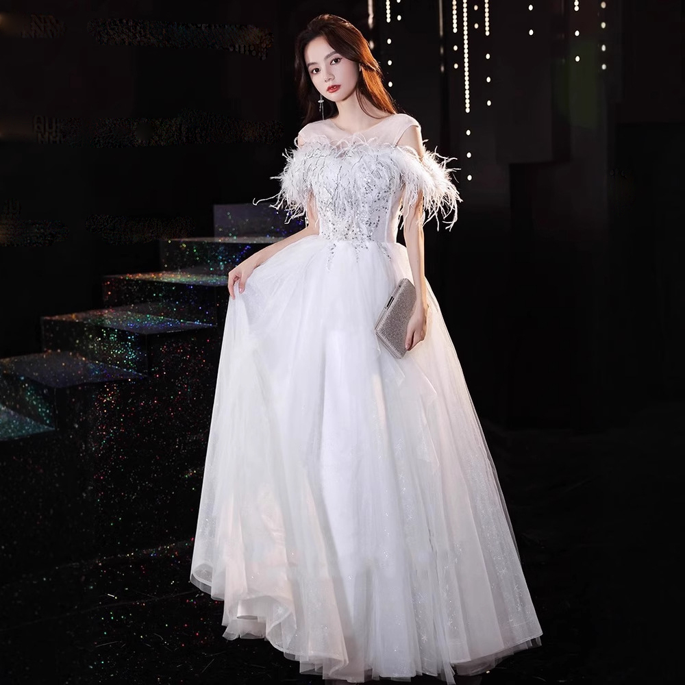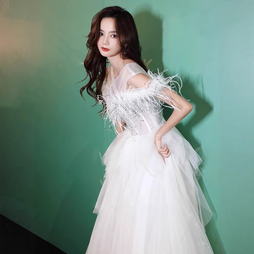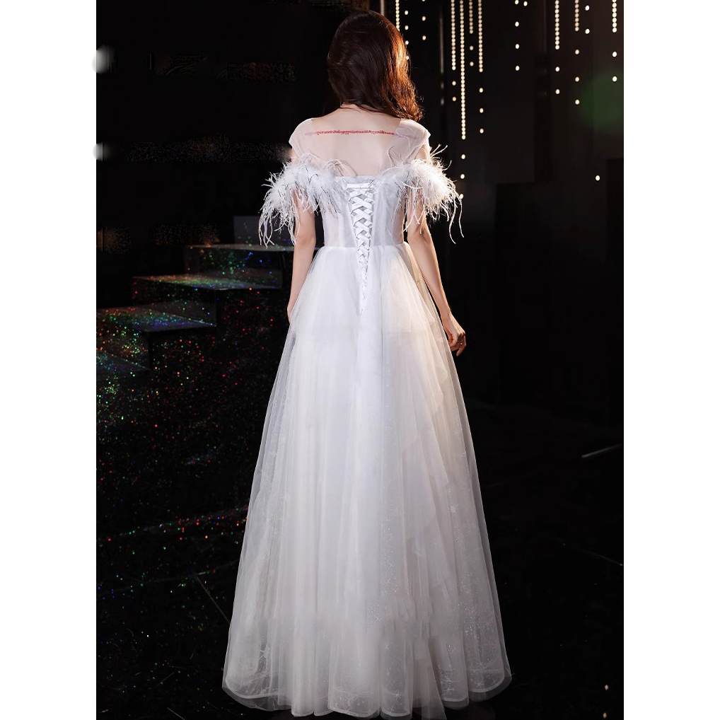 Polyester Robe longue de soirée Patchwork Solide Blanc pièce