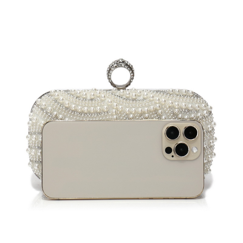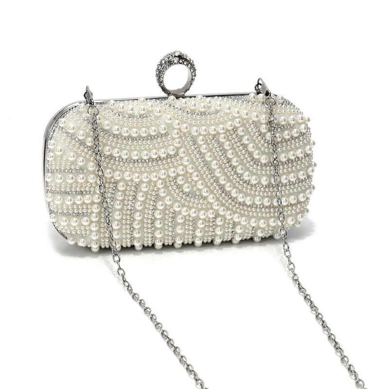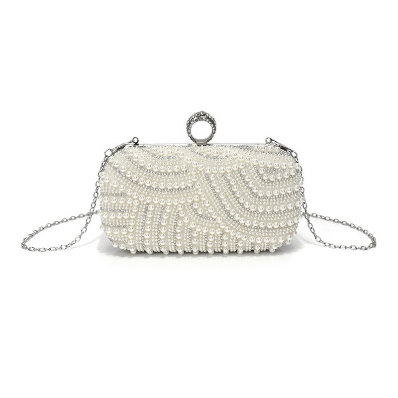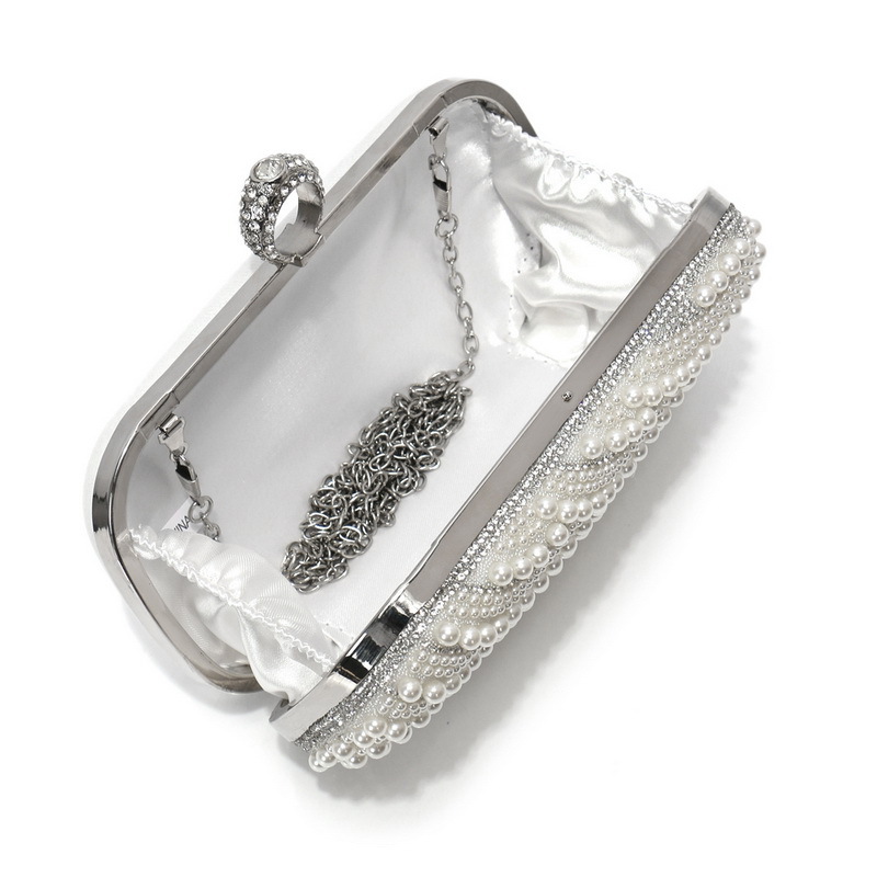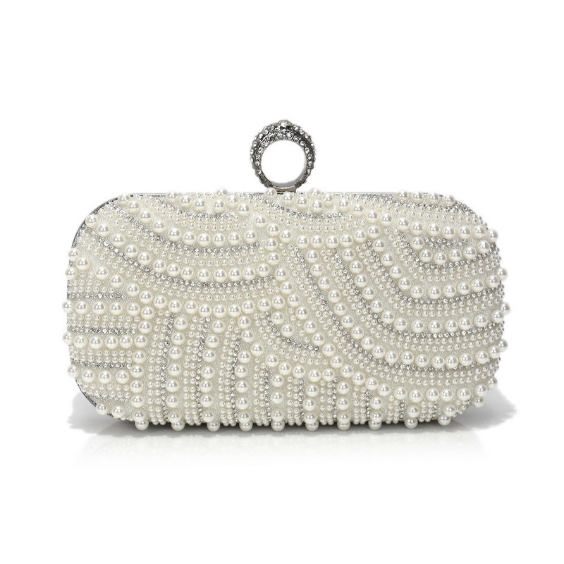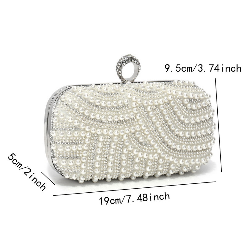Polyester Sac d’embrayage Perle en plastique Blanc pièce