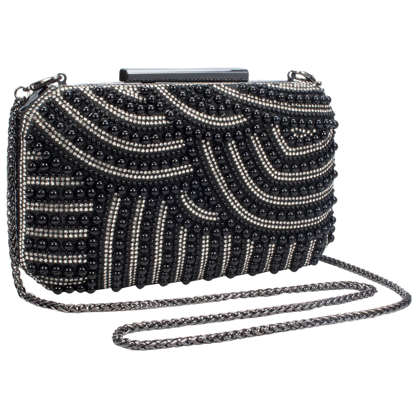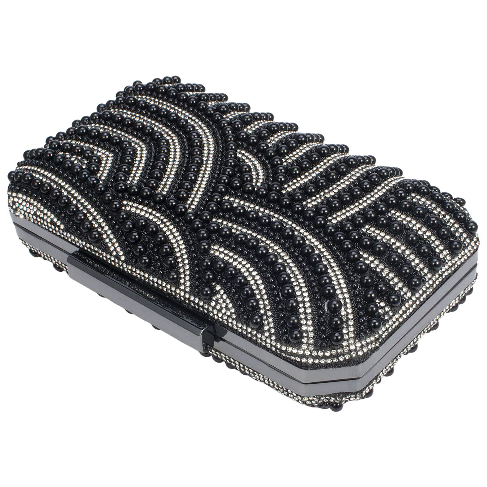 Polyester Sac d’embrayage Perle en plastique Noir pièce