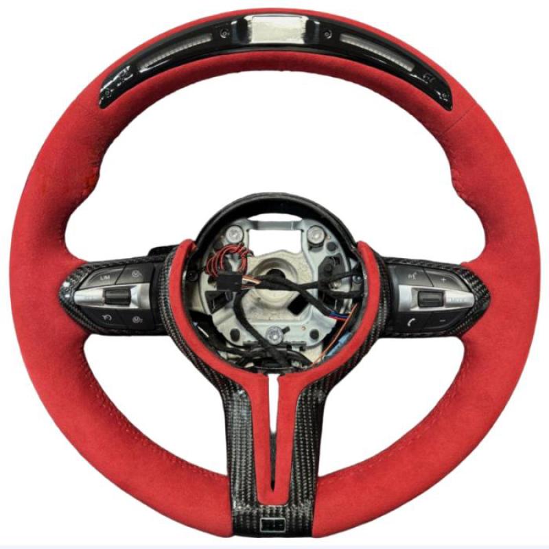 Red Alcantara Steering Wheel Fits For BMW F30 F36 F20 F21 F22 F87 F80 F82 with LED