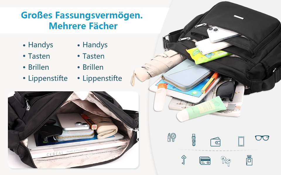 Women's Crossbody Bag Multi-layer Large Capacity Nylon Cloth Business Coin Purse