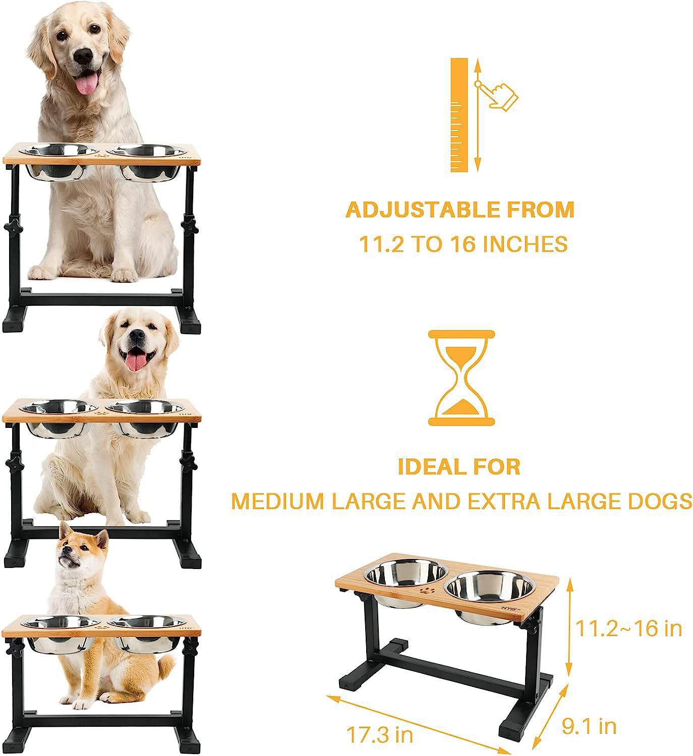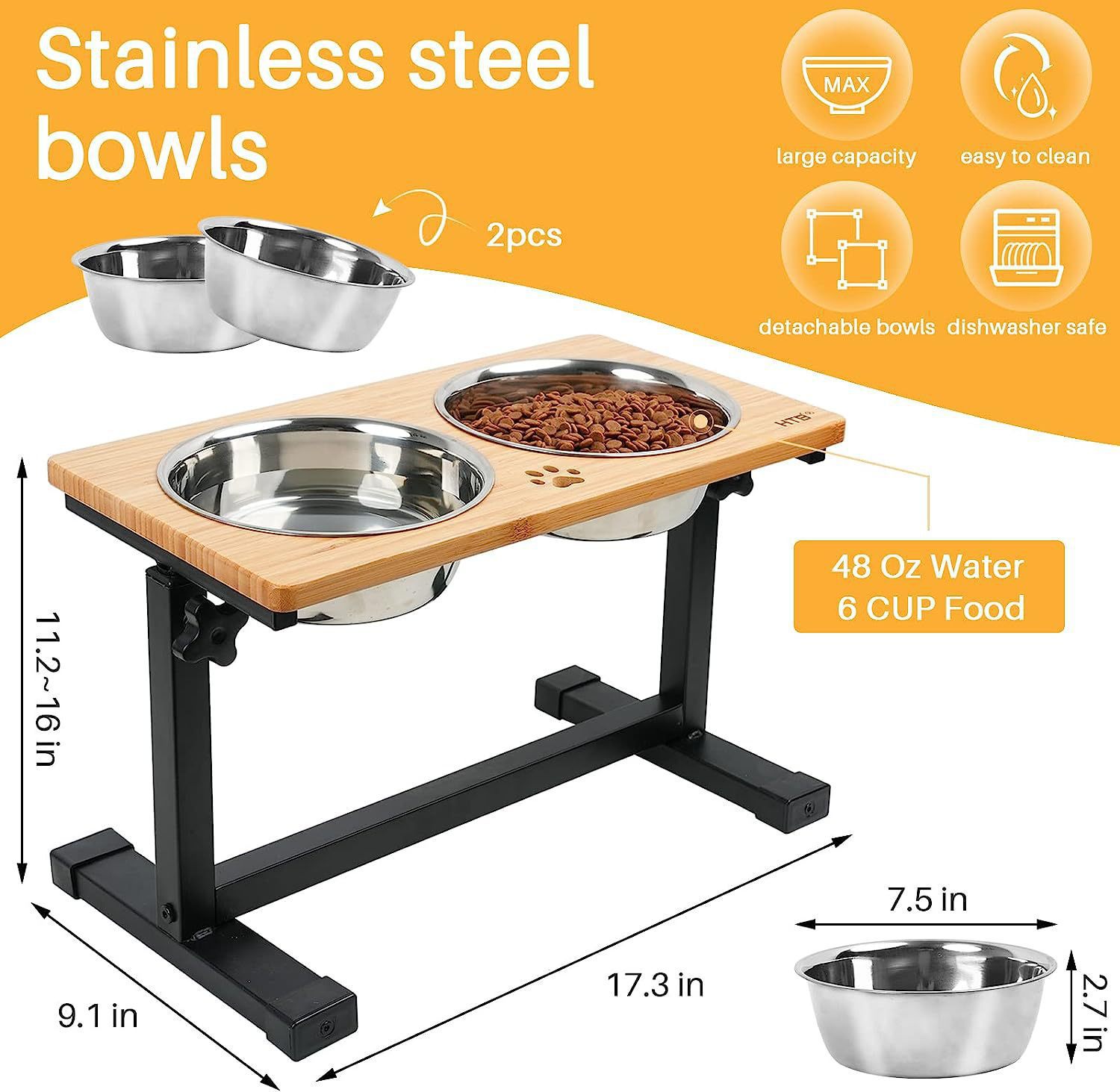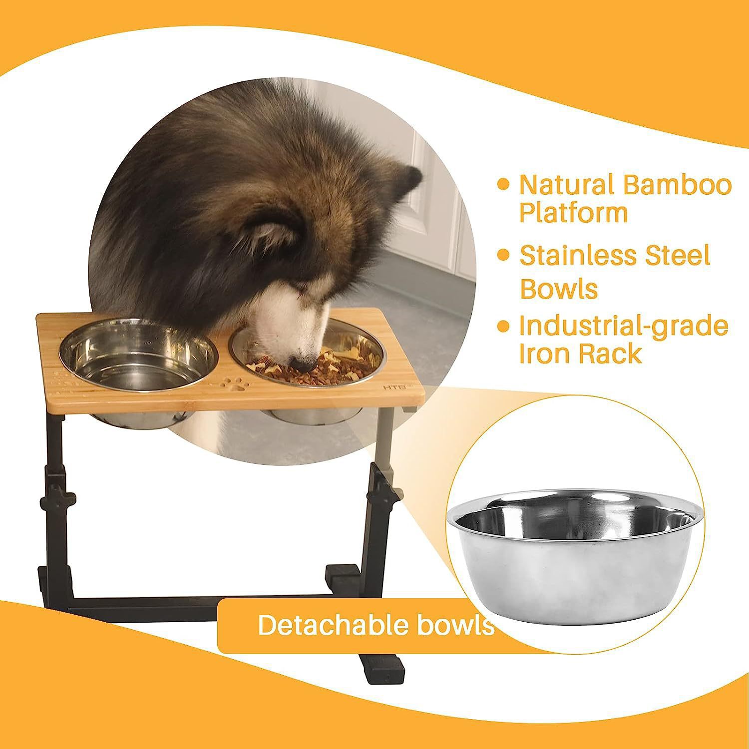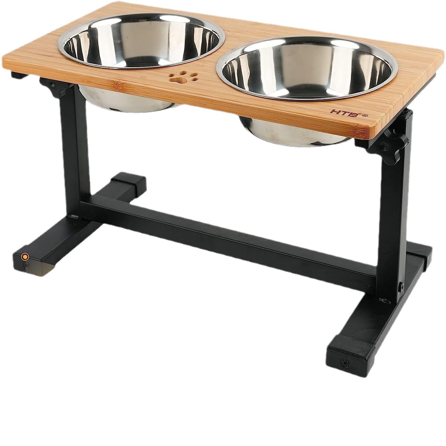 Wooden elevated dog bowl household adjustable pet dog cat feeding rack