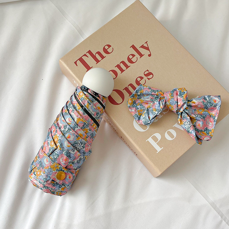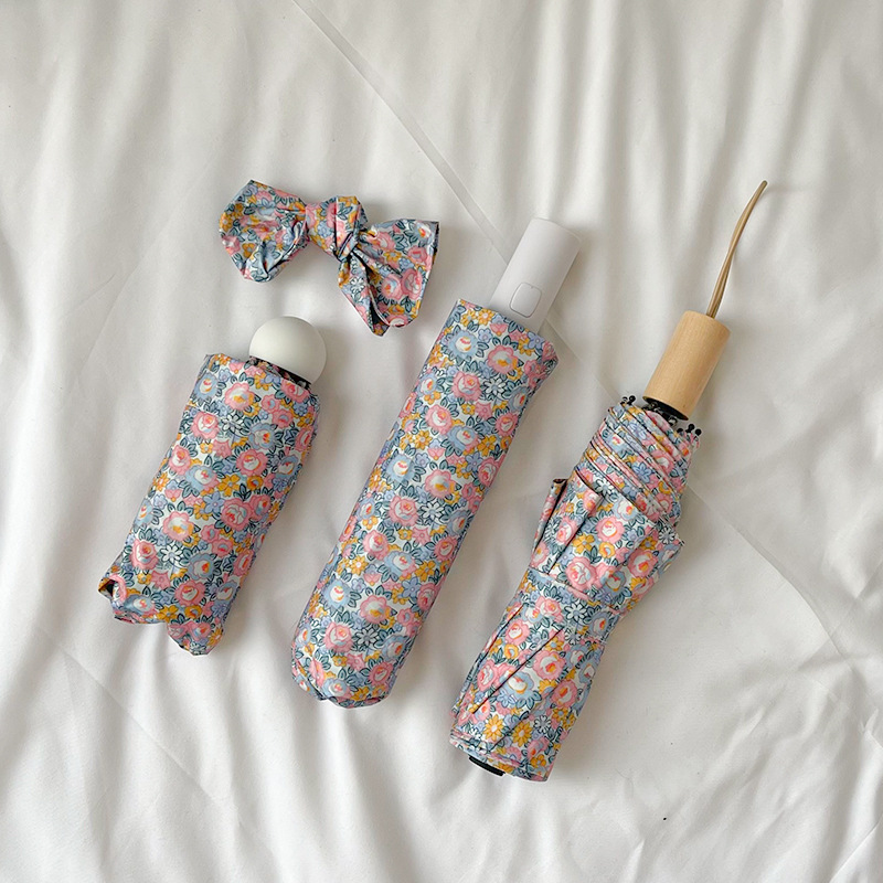 ビニール & 紬 傘 印刷 花 青とピンク 一つ