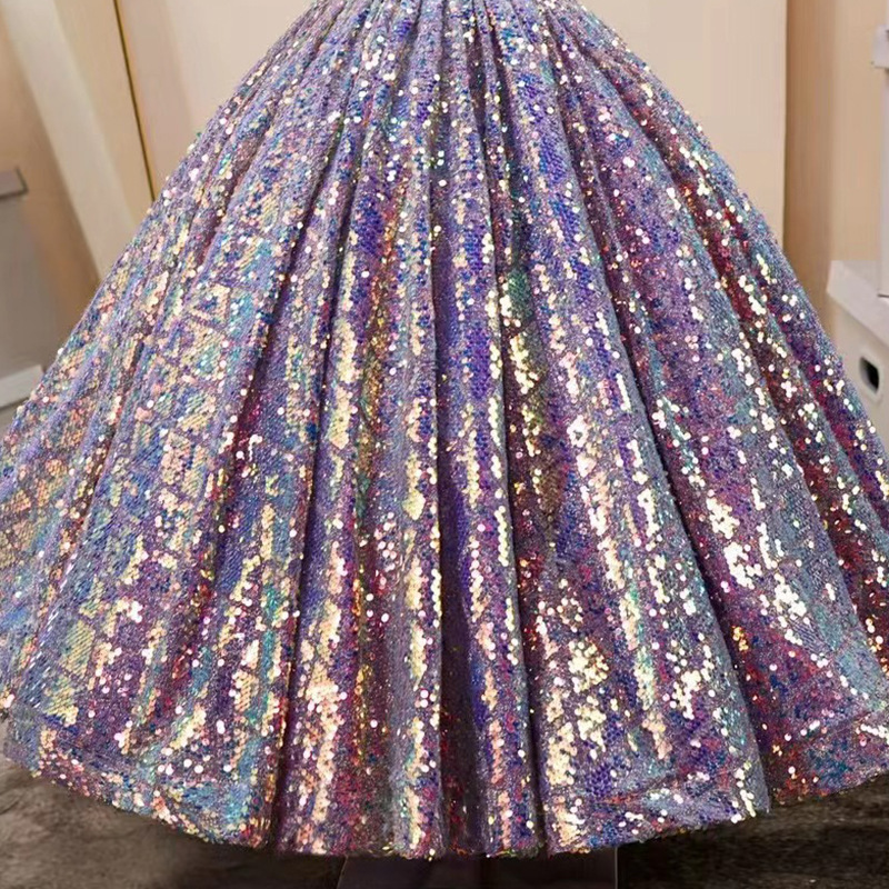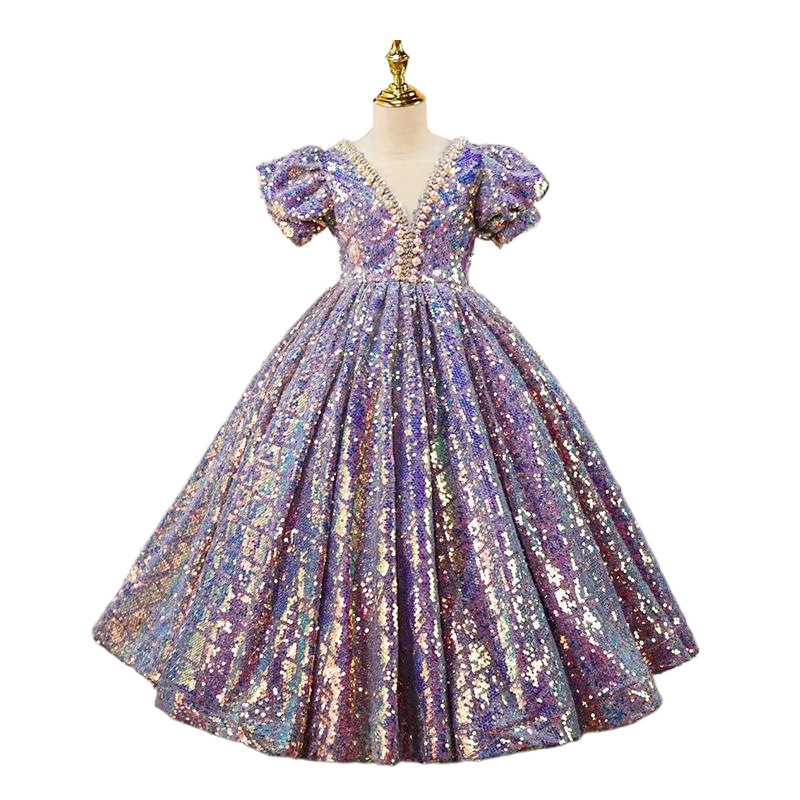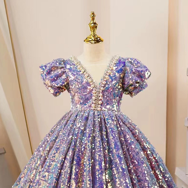 化学繊維 & ポリエステル ガール ワンピース ドレス スパンコール 紫 一つ