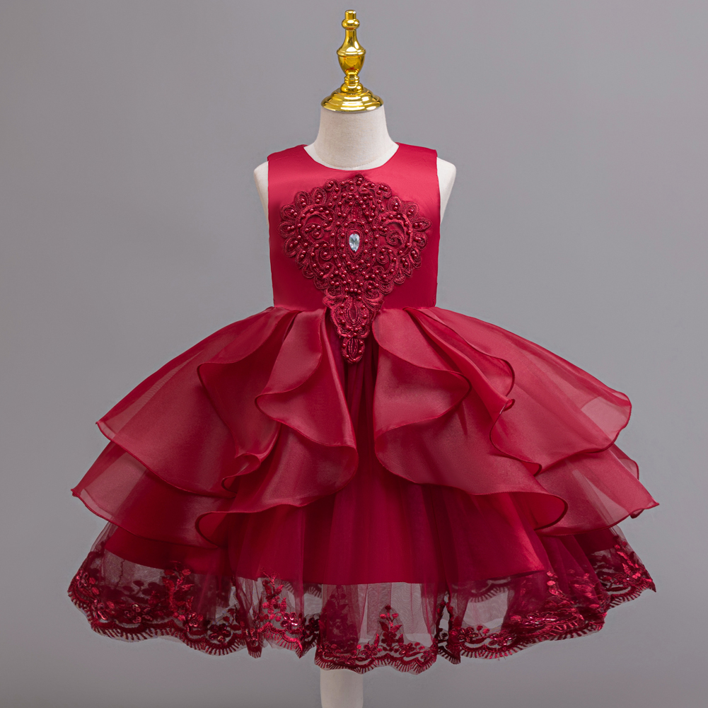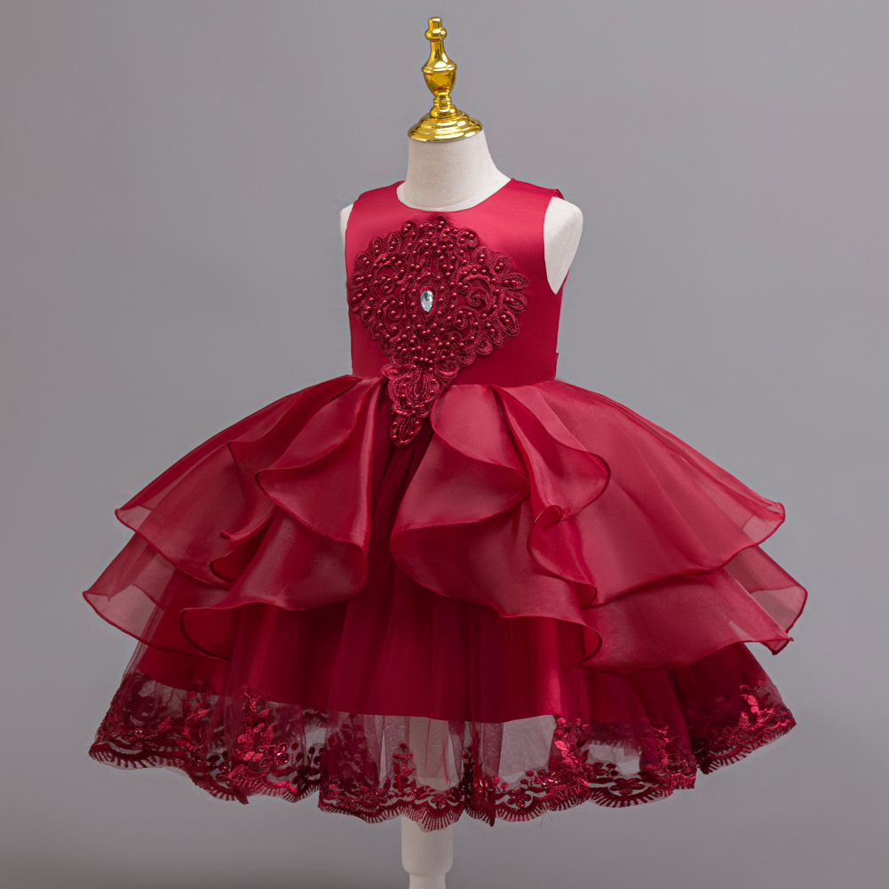ガーゼ & ポリエステル ガール ワンピース ドレス スパンコール 選択のためのより多くの色 一つ