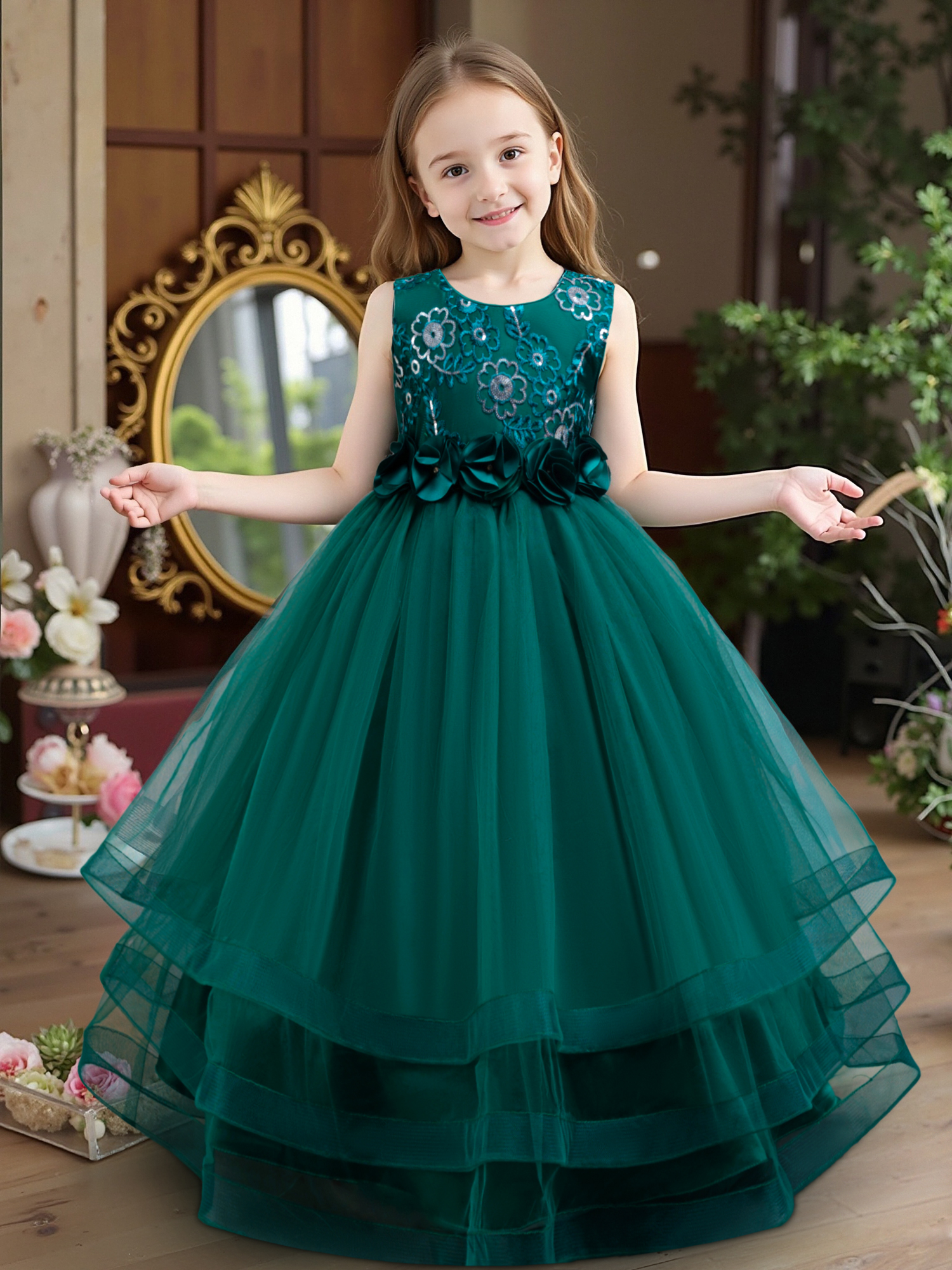 ガーゼ & ポリエステル ガール ワンピース ドレス スパンコール 選択のためのより多くの色 一つ
