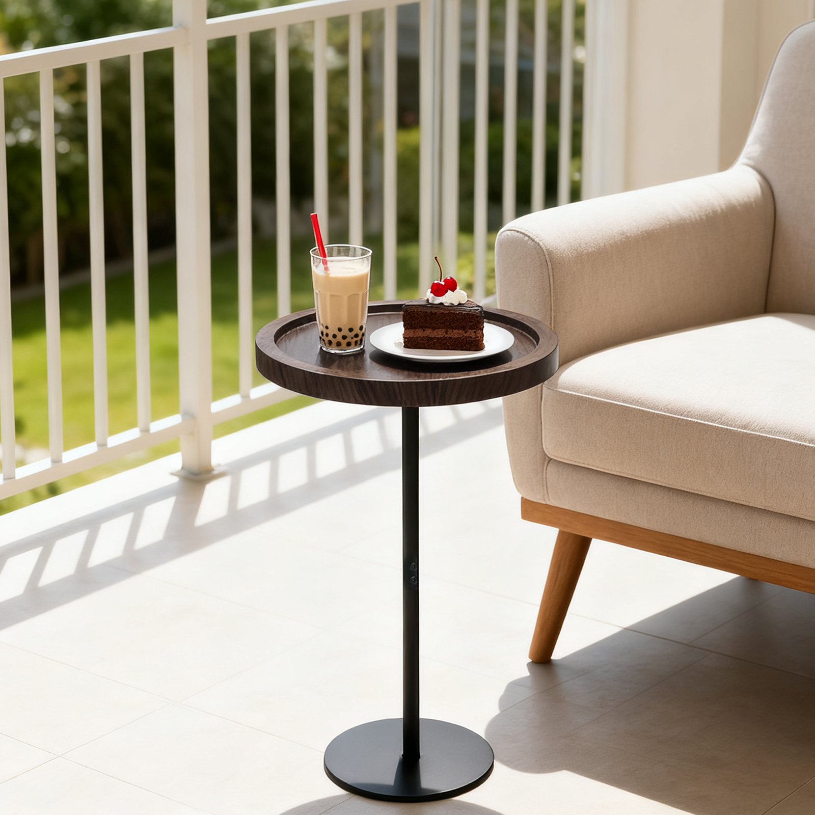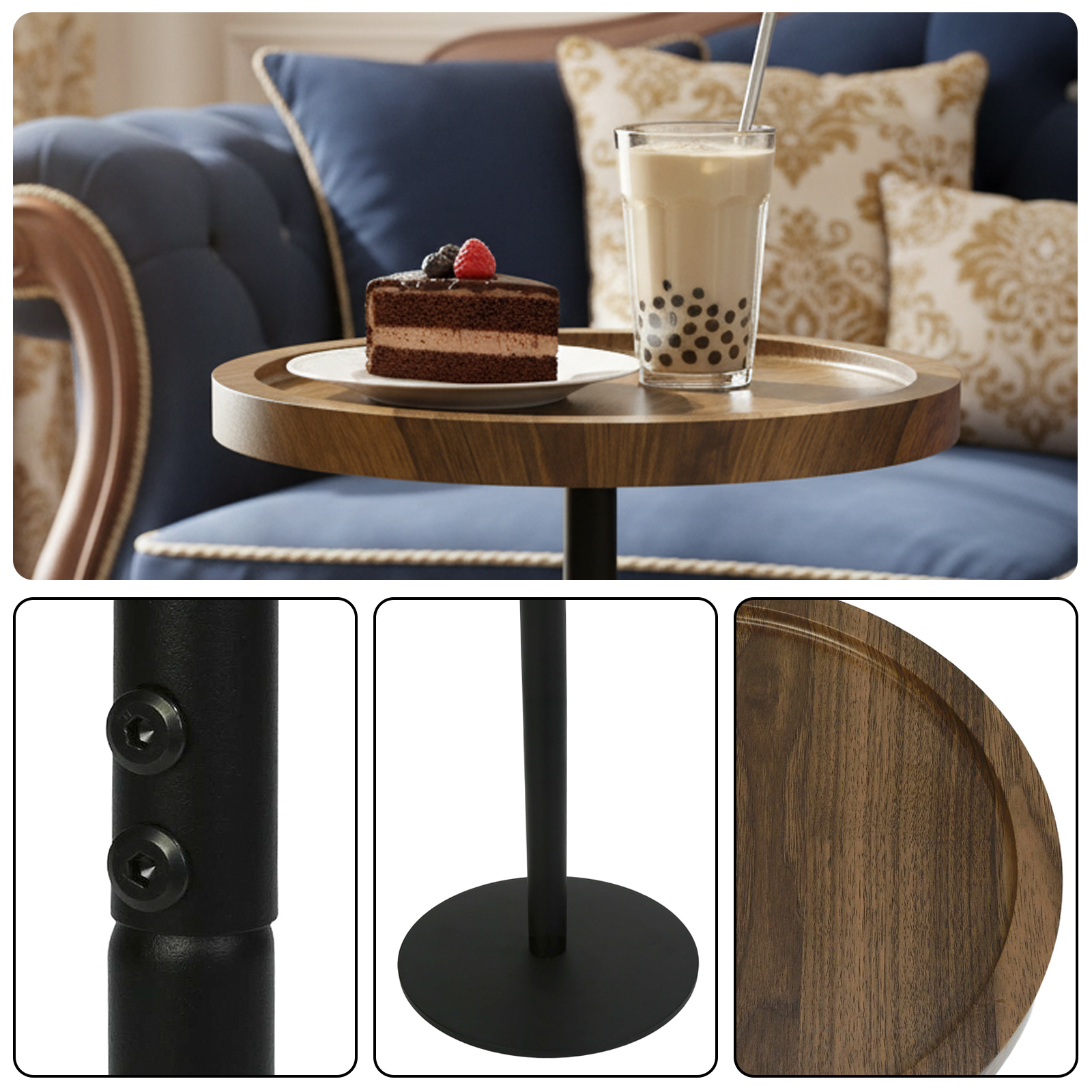 中密度ファイバーボード & 鋼管 サイドテーブル ダークコーヒー 一つ