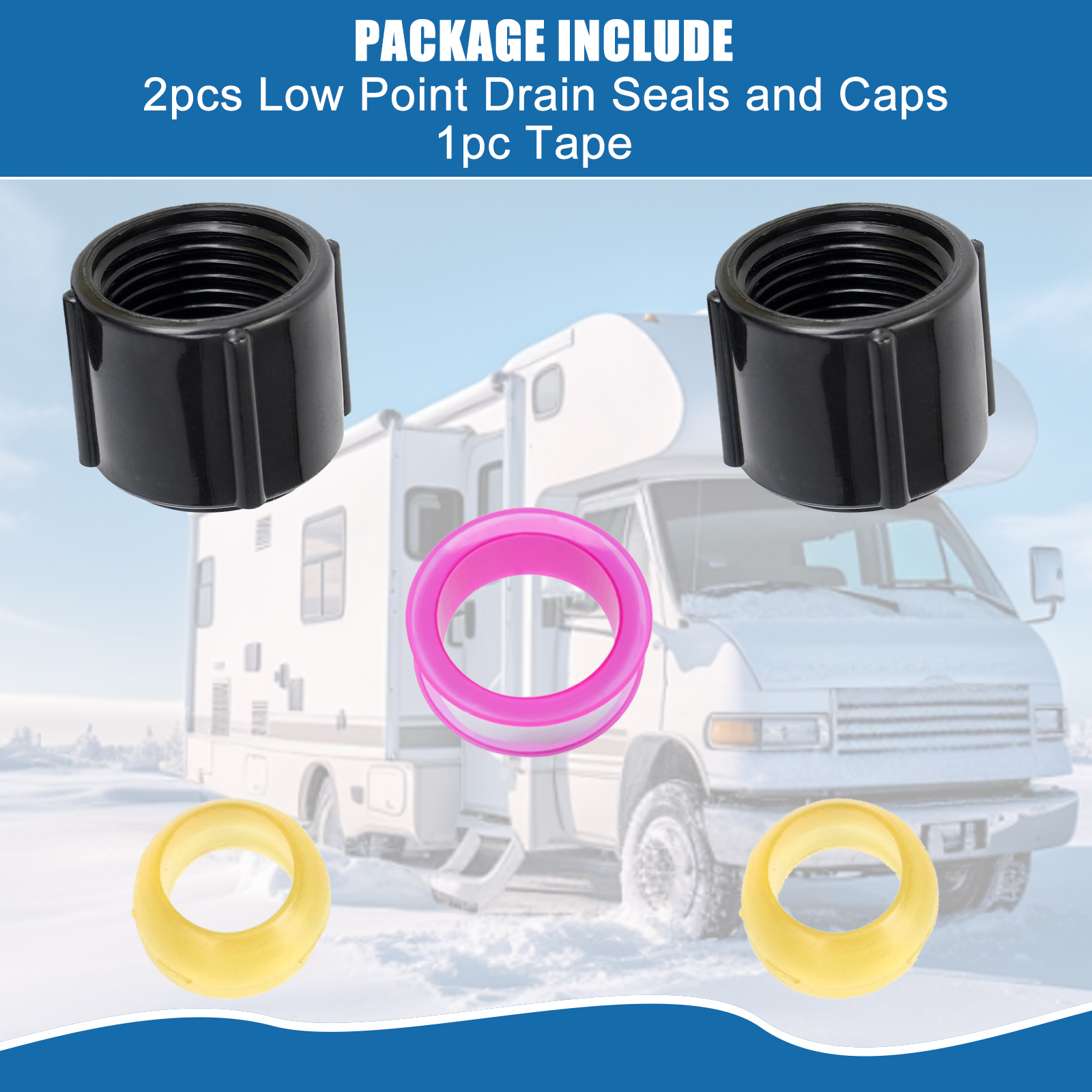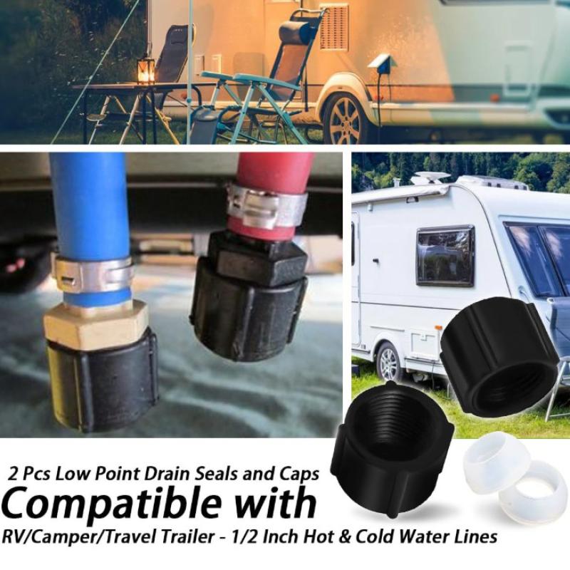 互換性がある - RV/キャンパー/旅行トレーラーと互換性がある2つのPCの低点排水シールおよび帽子 - 1/2インチのホット&冷水ライン