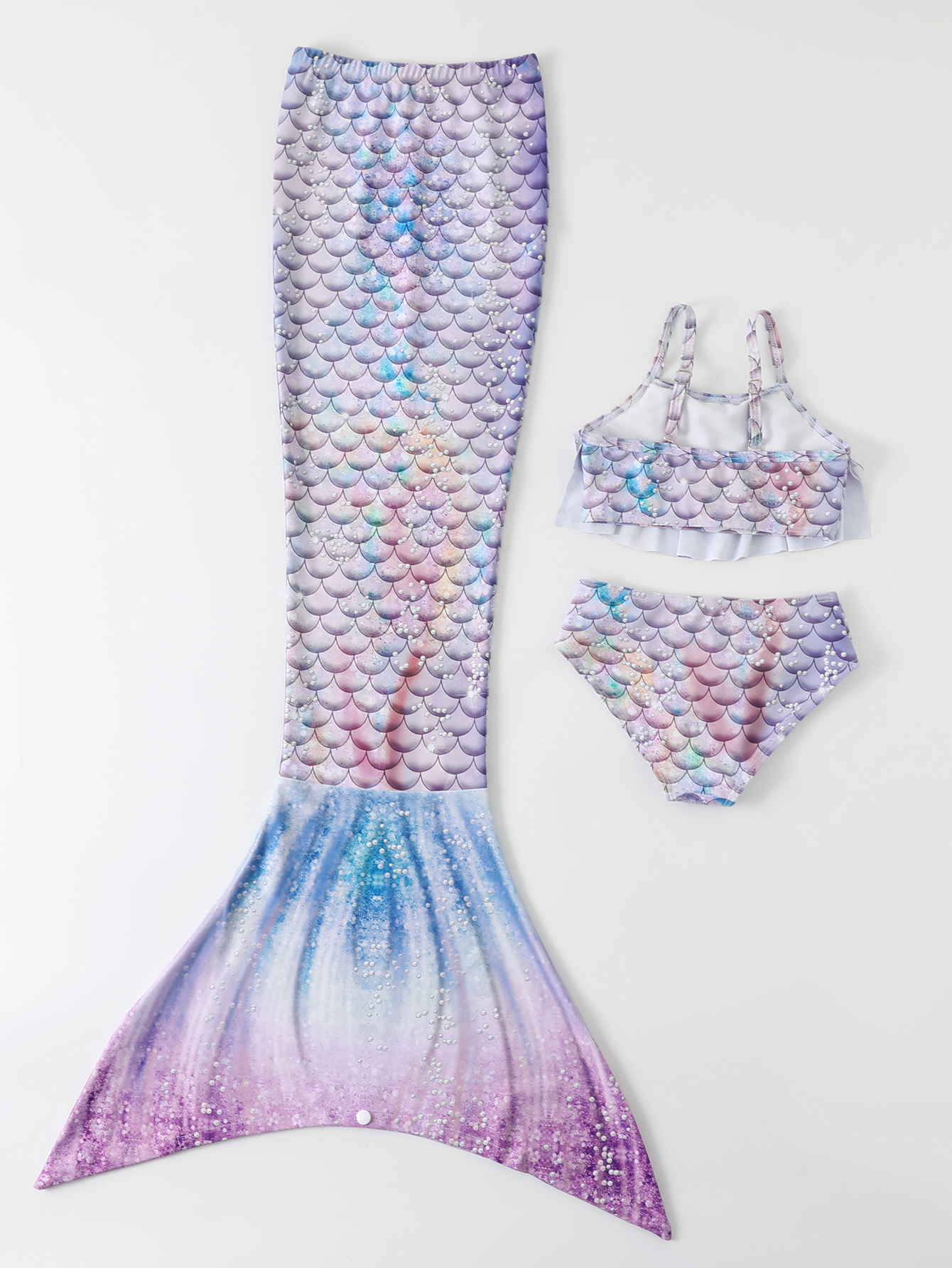 ポリアミド & ポリエステル 子供用メールスイミングスーツ 印刷 魚のスケールパターン 多色 セット