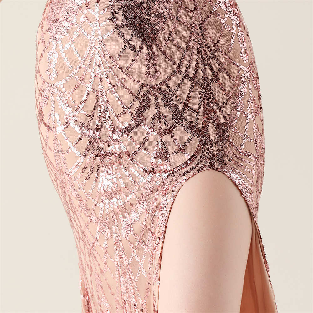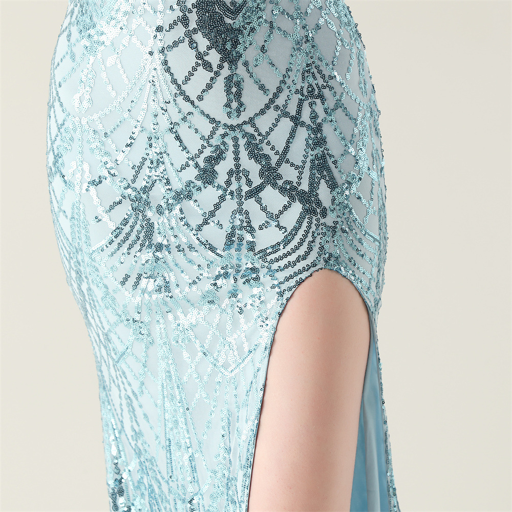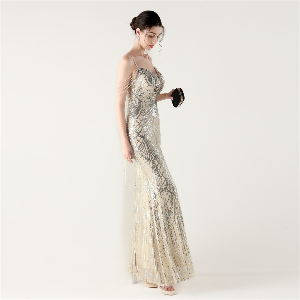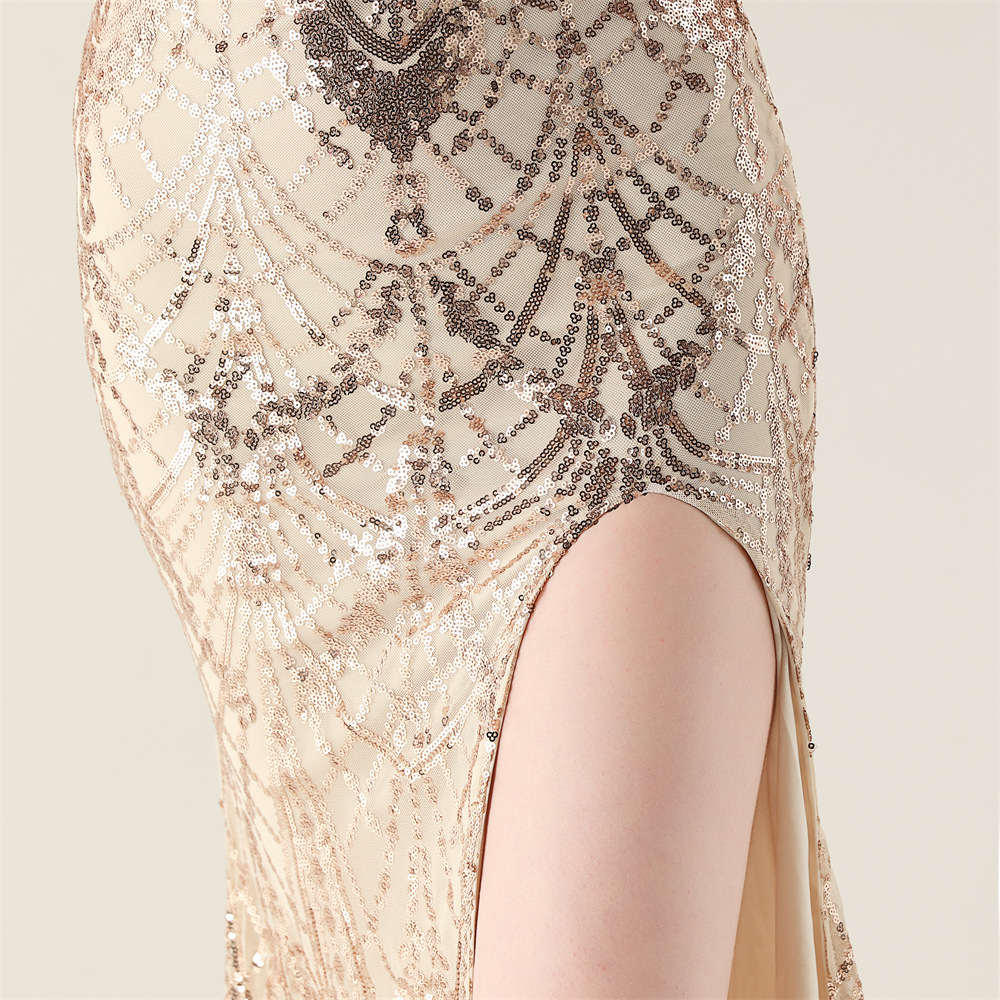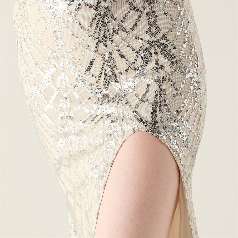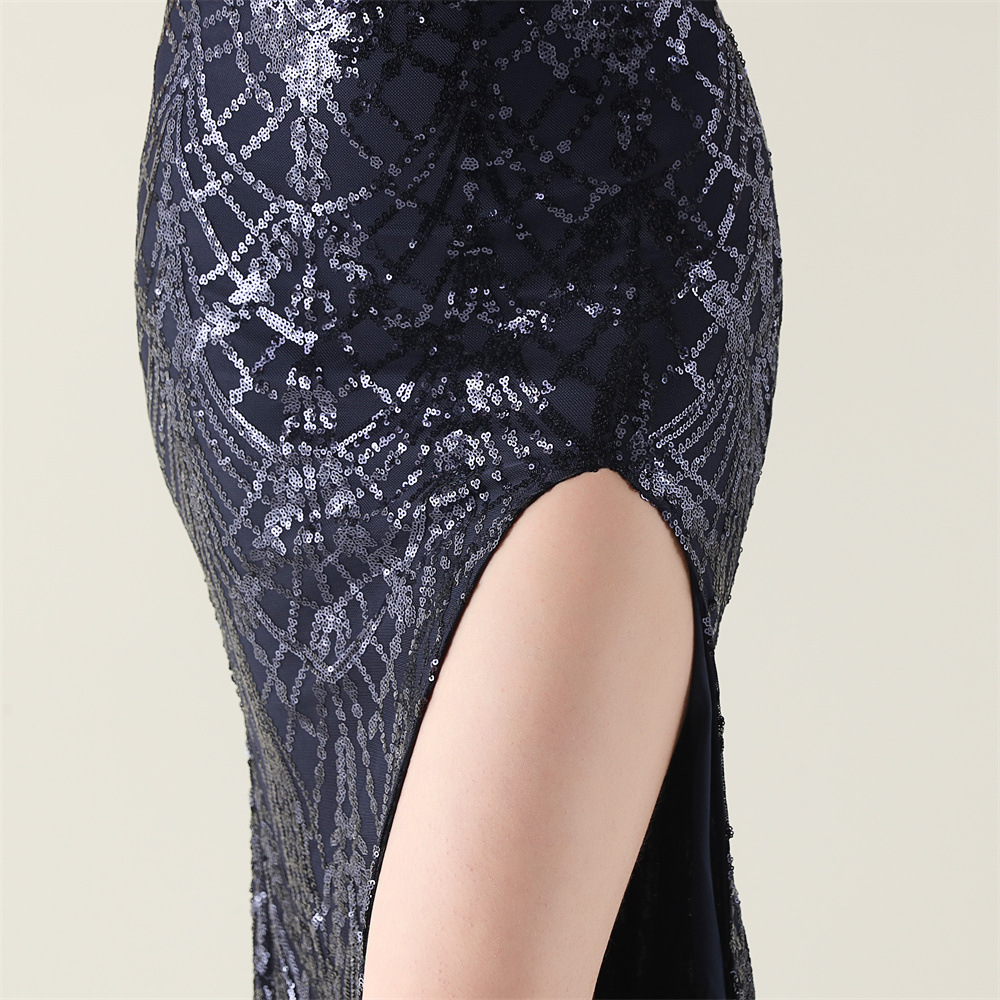 ポリエステル ロングイブニングドレス スパンコール 選択のためのより多くの色 一つ