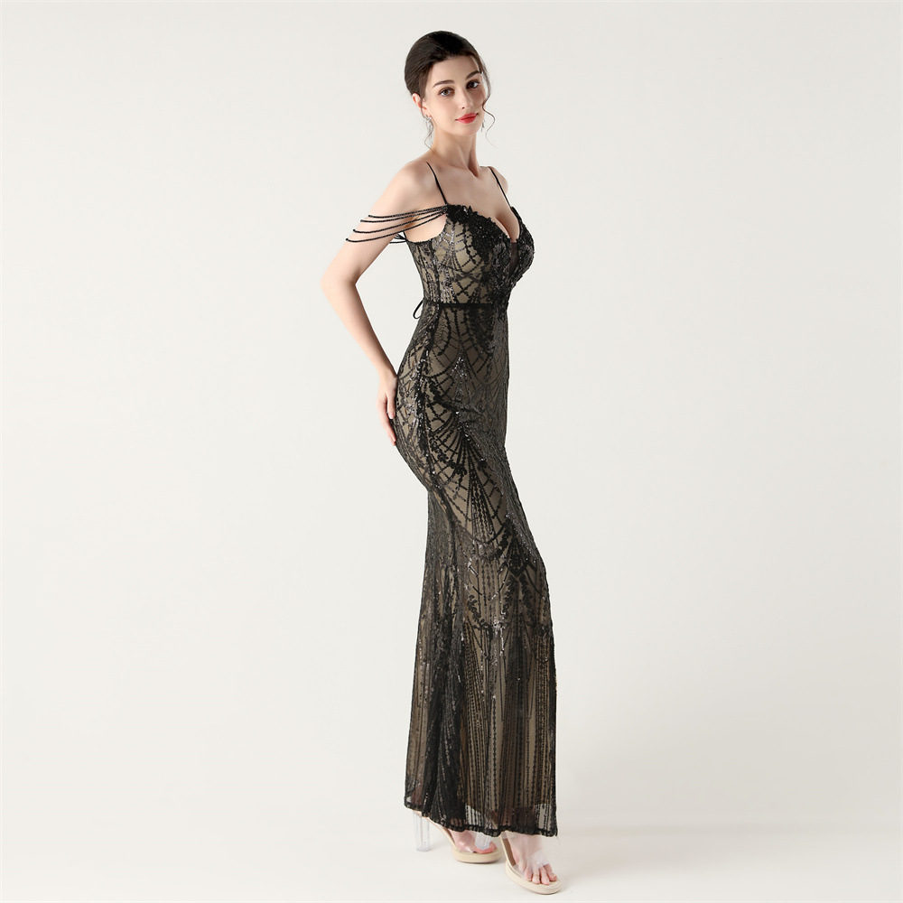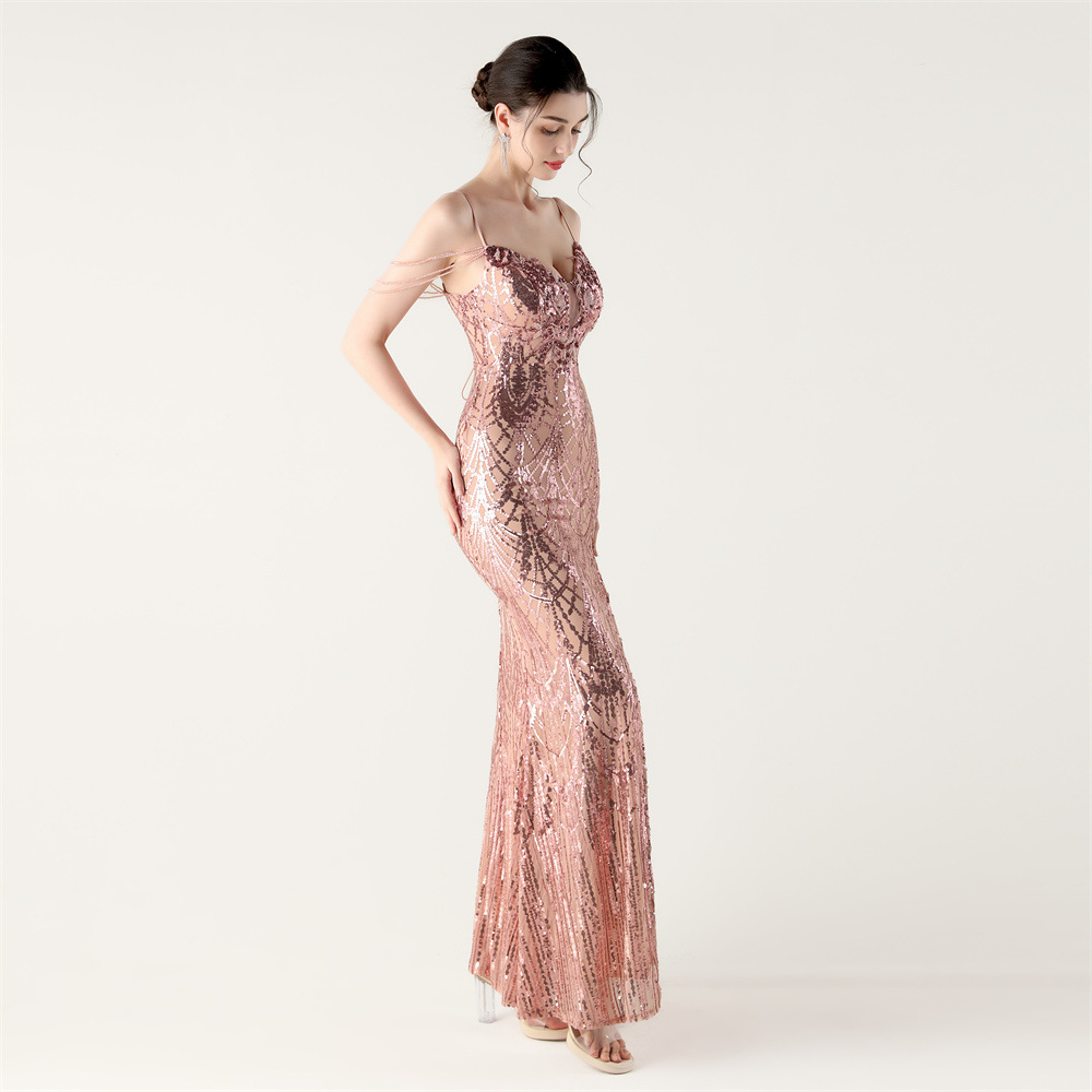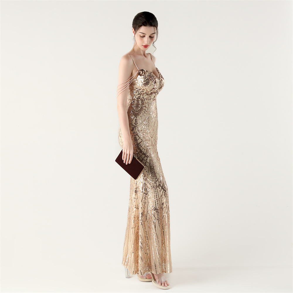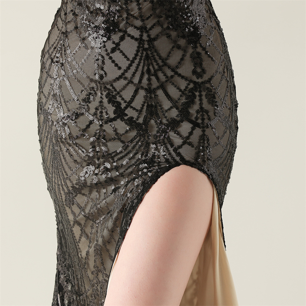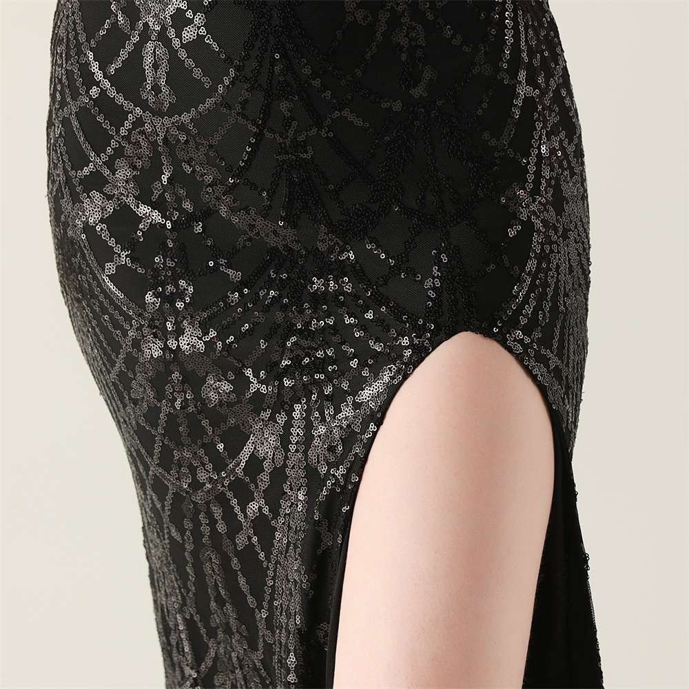ポリエステル ロングイブニングドレス スパンコール 選択のためのより多くの色 一つ