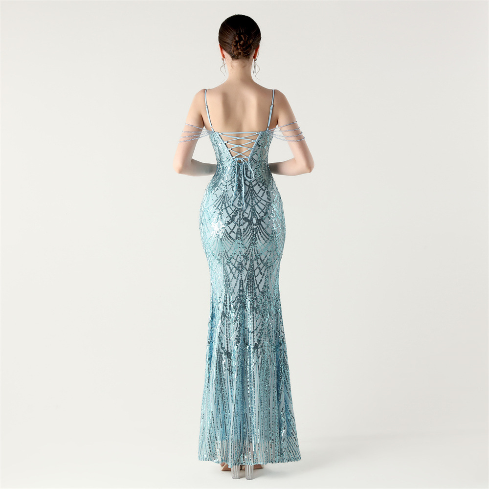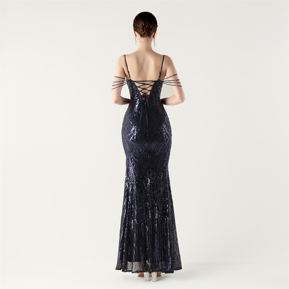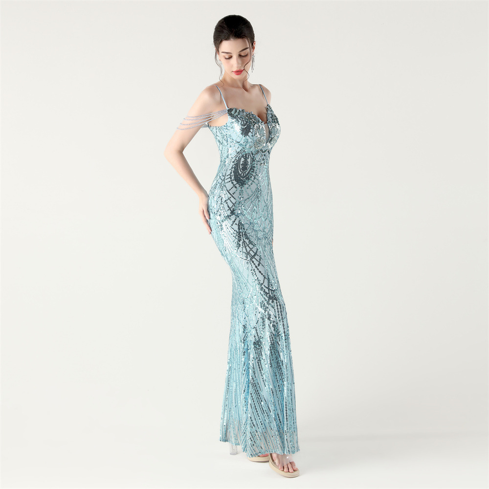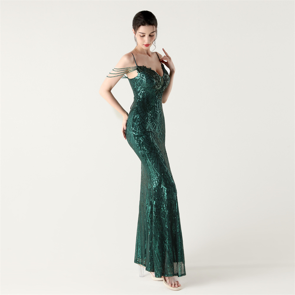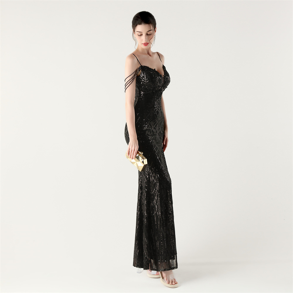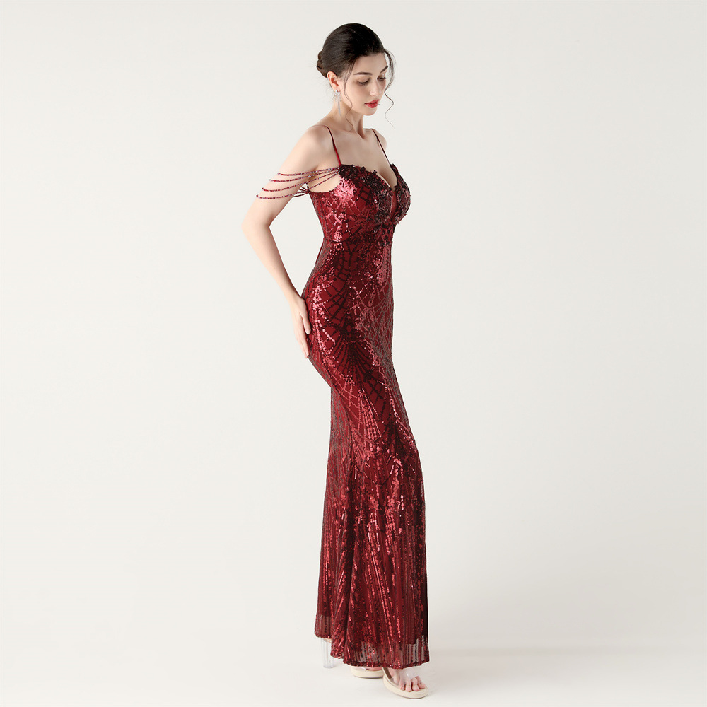 ポリエステル ロングイブニングドレス スパンコール 選択のためのより多くの色 一つ