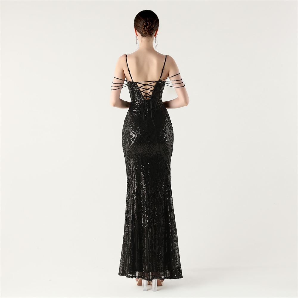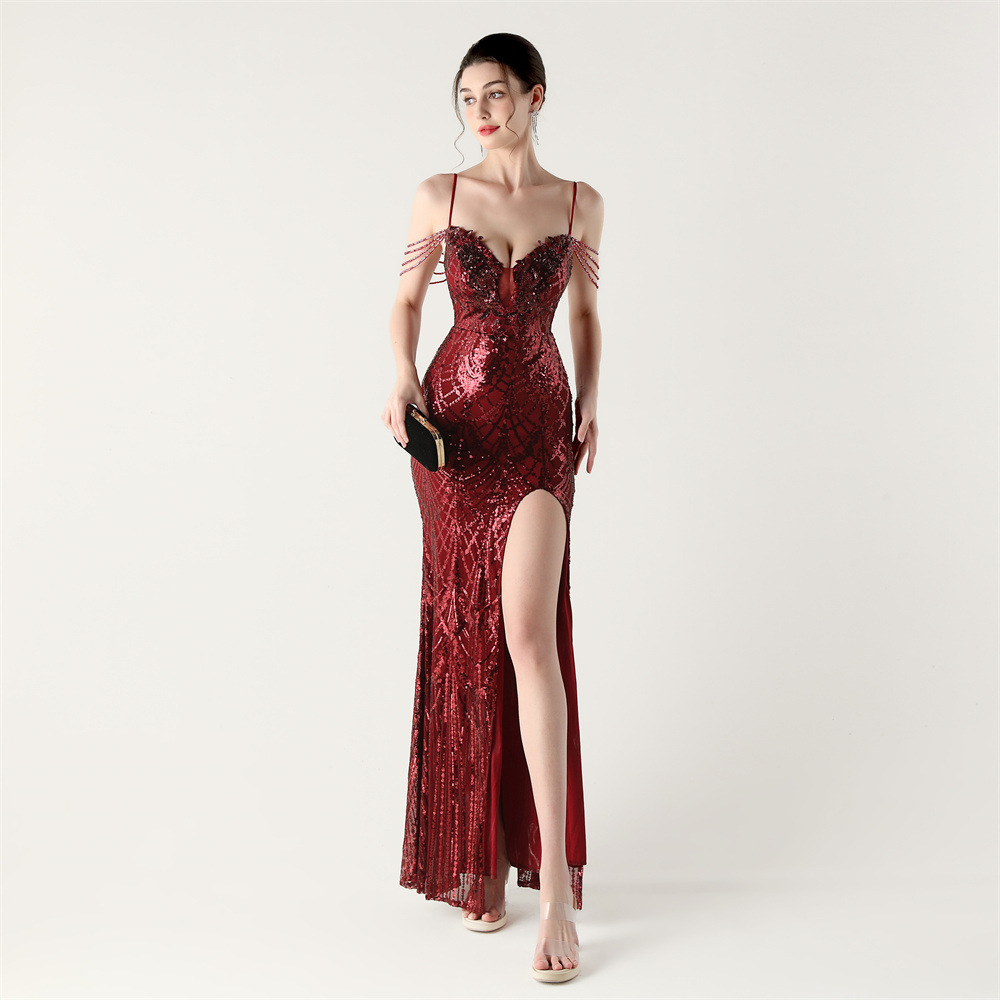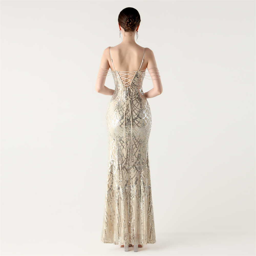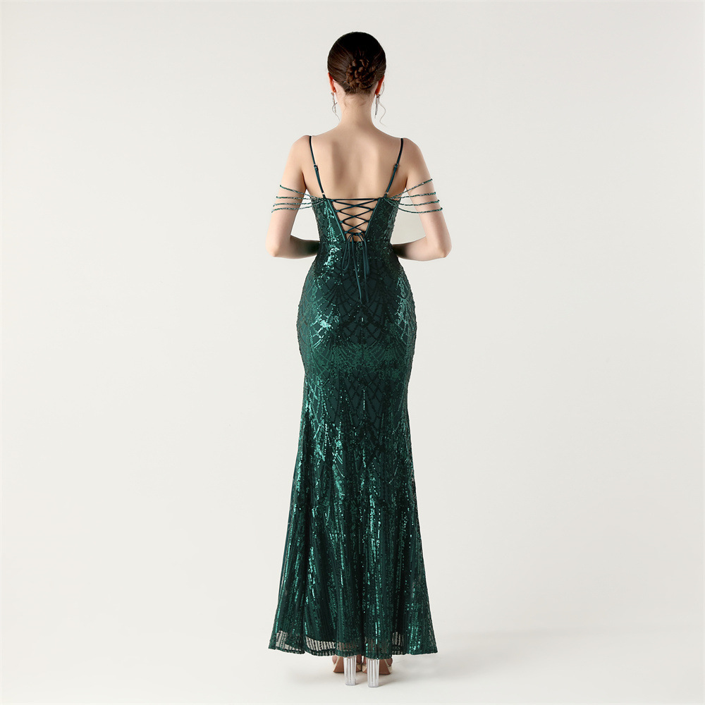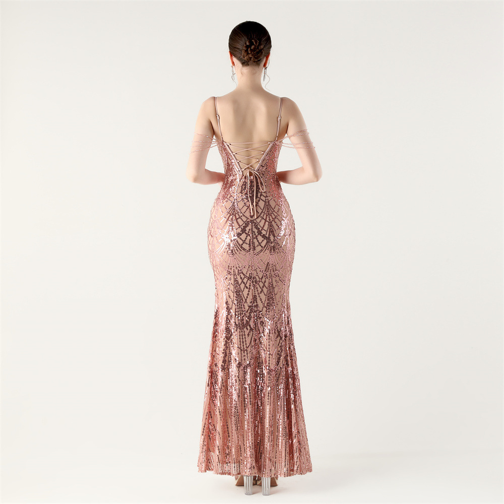 ポリエステル ロングイブニングドレス スパンコール 選択のためのより多くの色 一つ