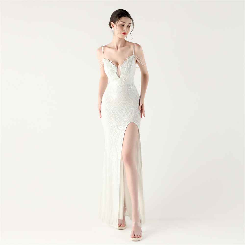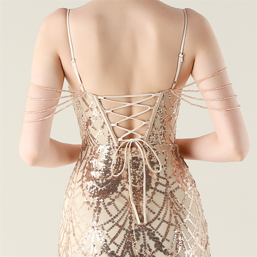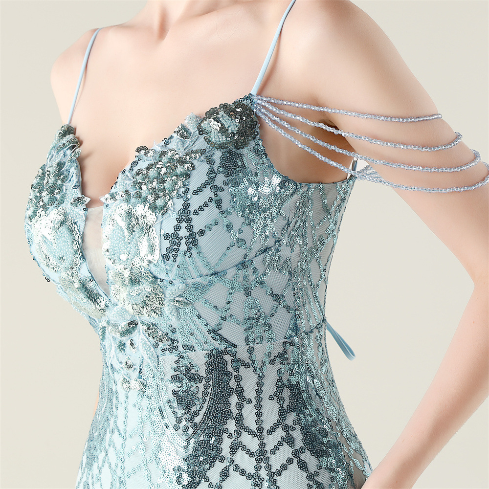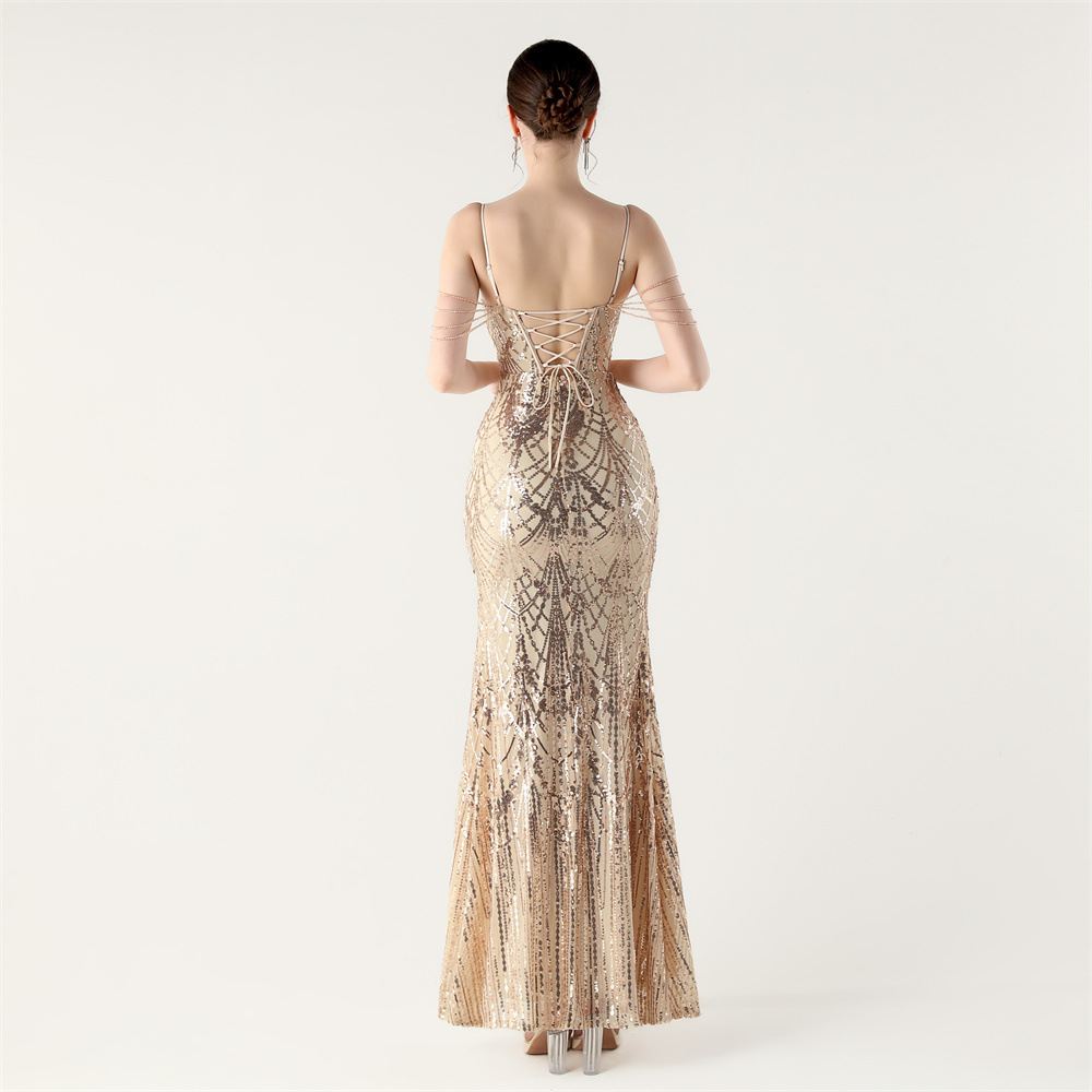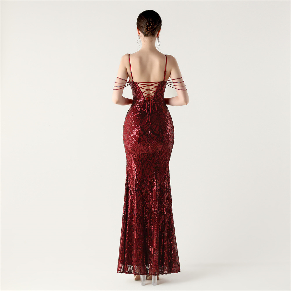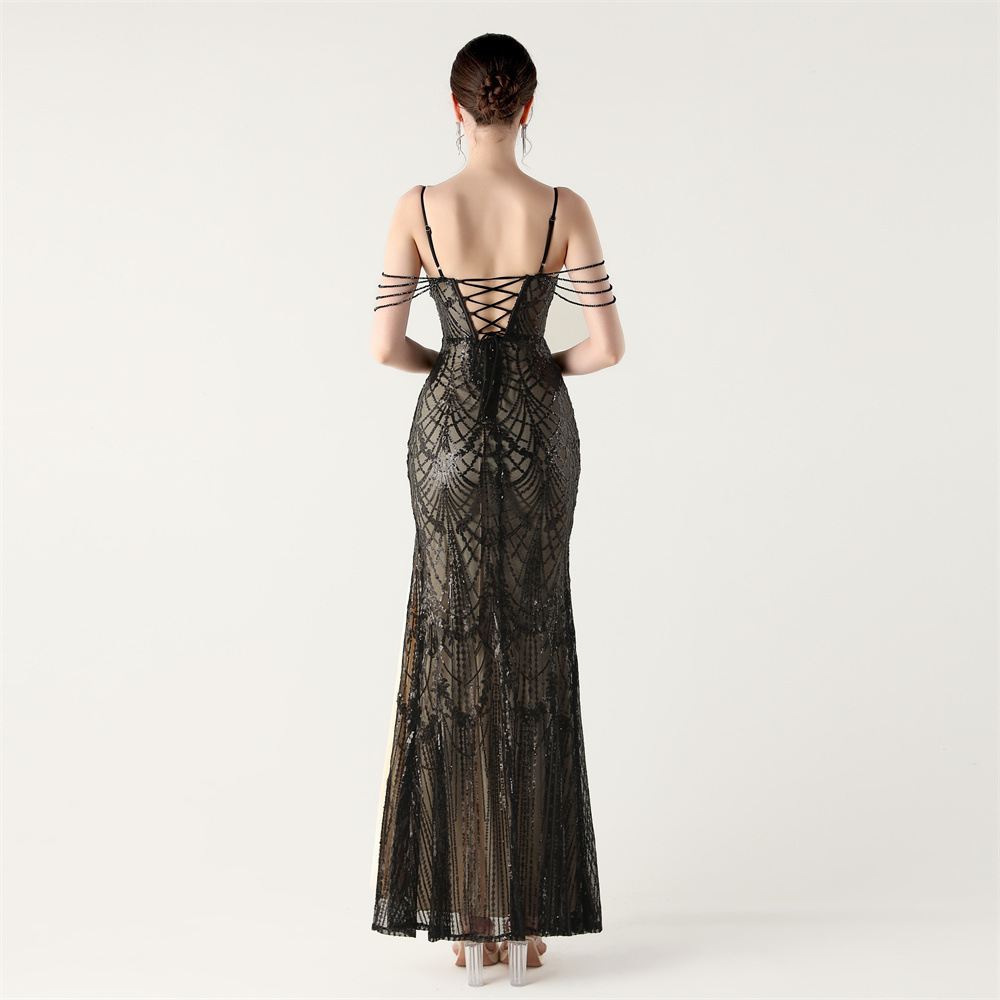 ポリエステル ロングイブニングドレス スパンコール 選択のためのより多くの色 一つ