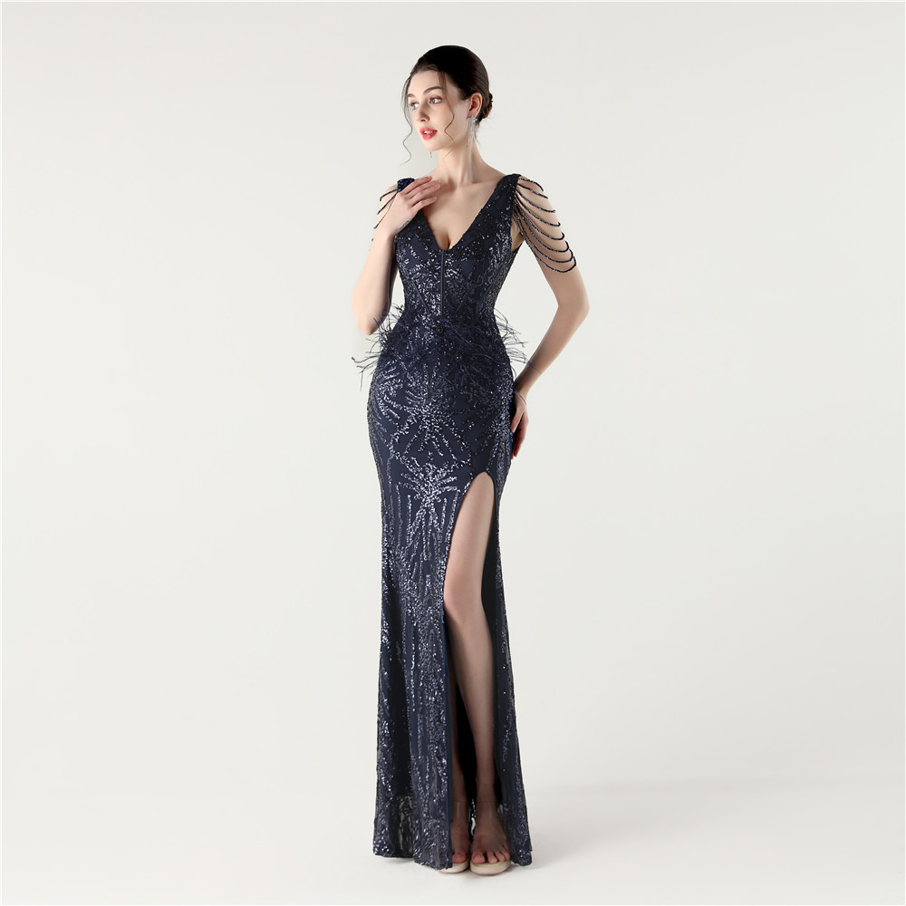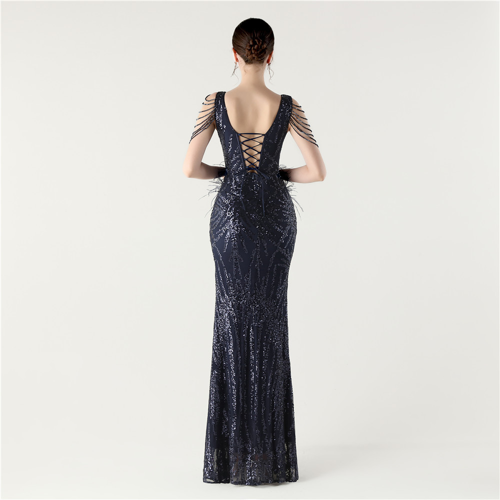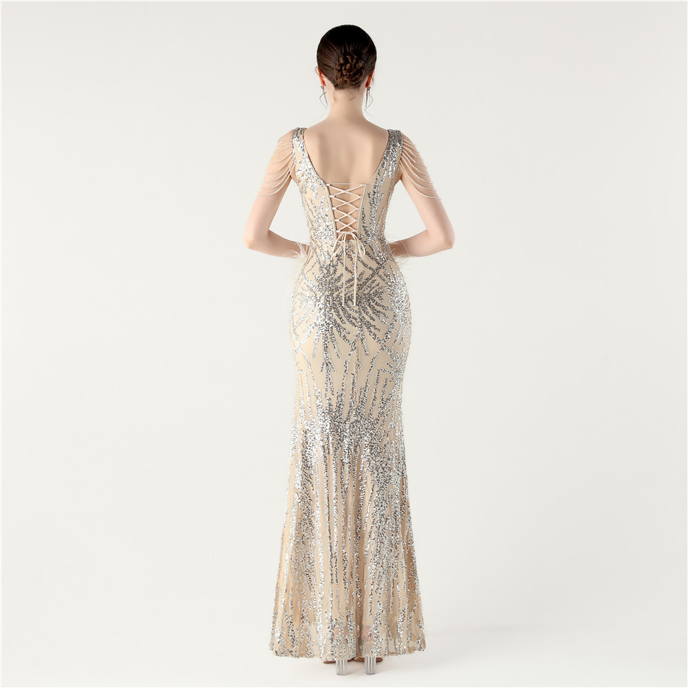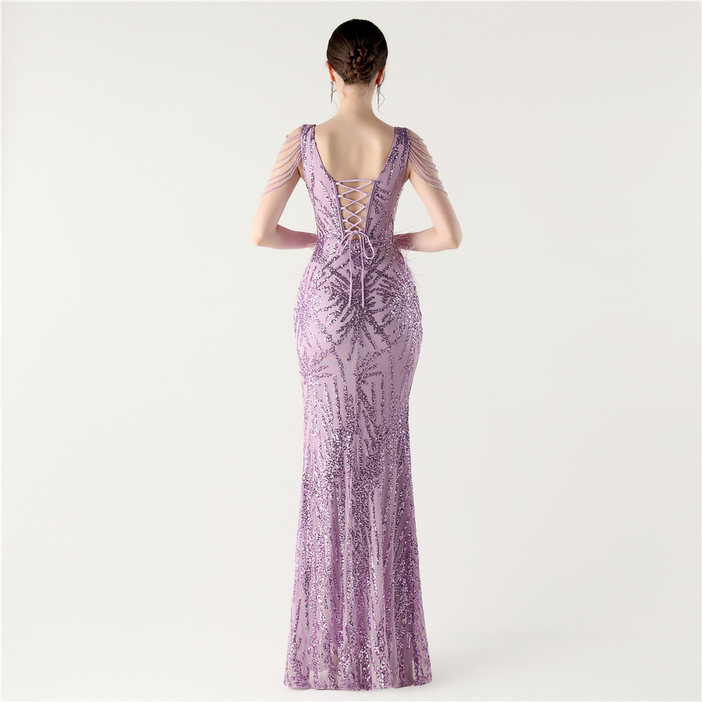 スパンコール & ポリエステル ロングイブニングドレス 選択のためのより多くの色 一つ