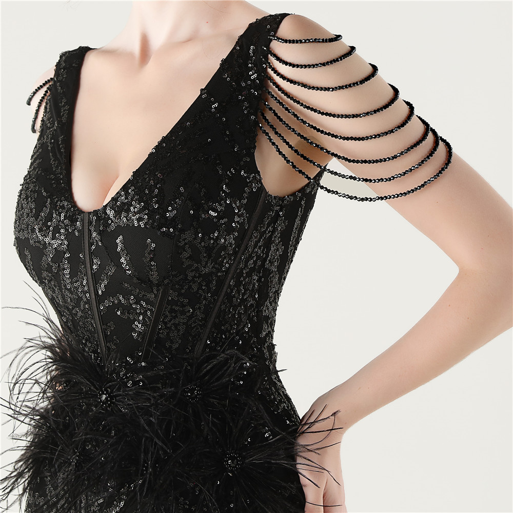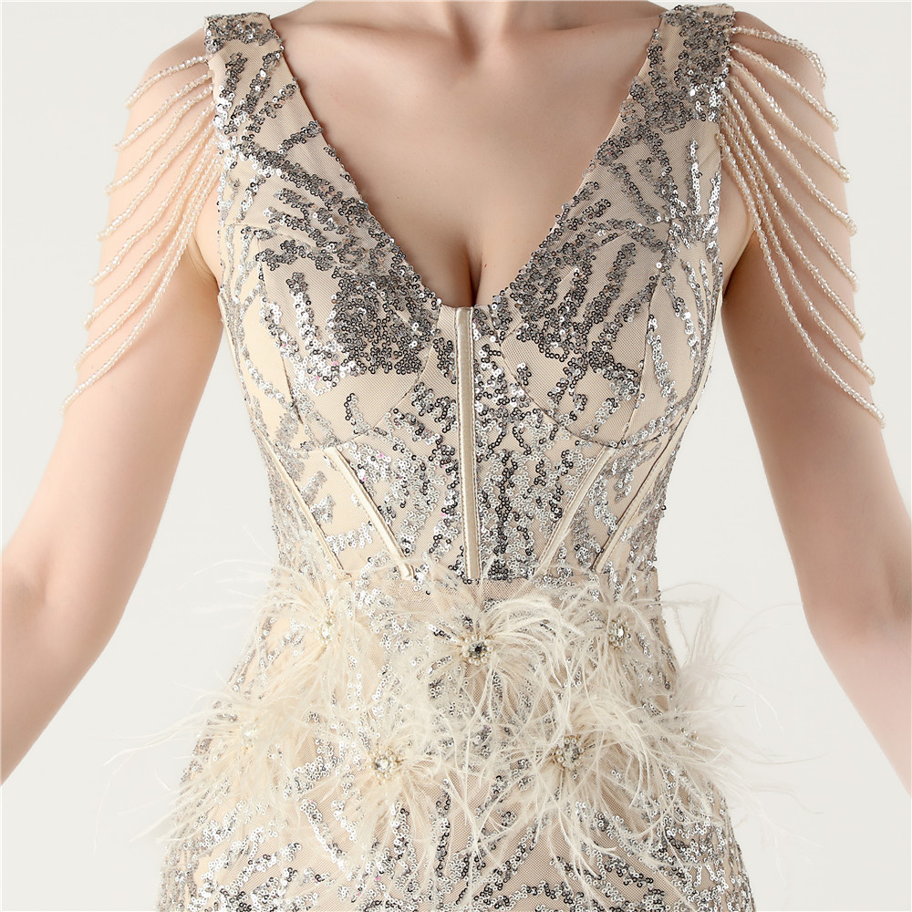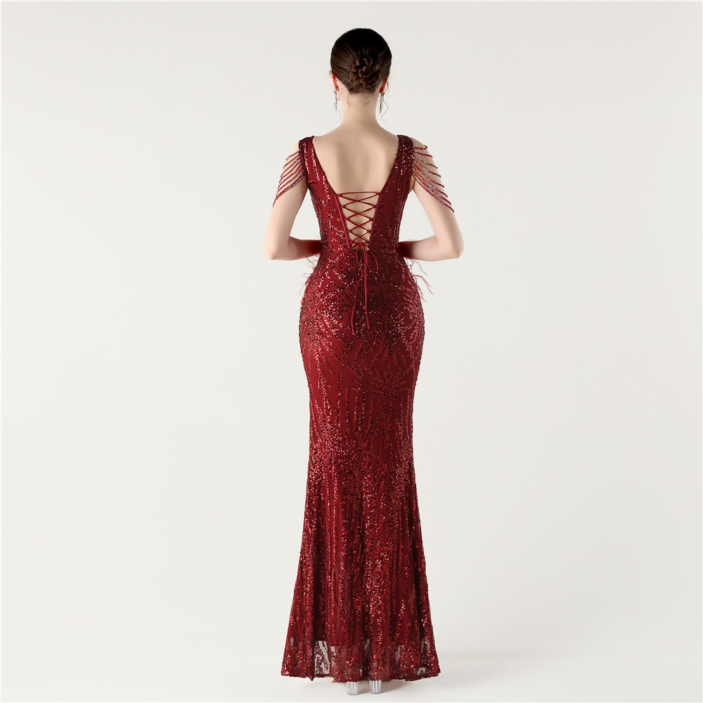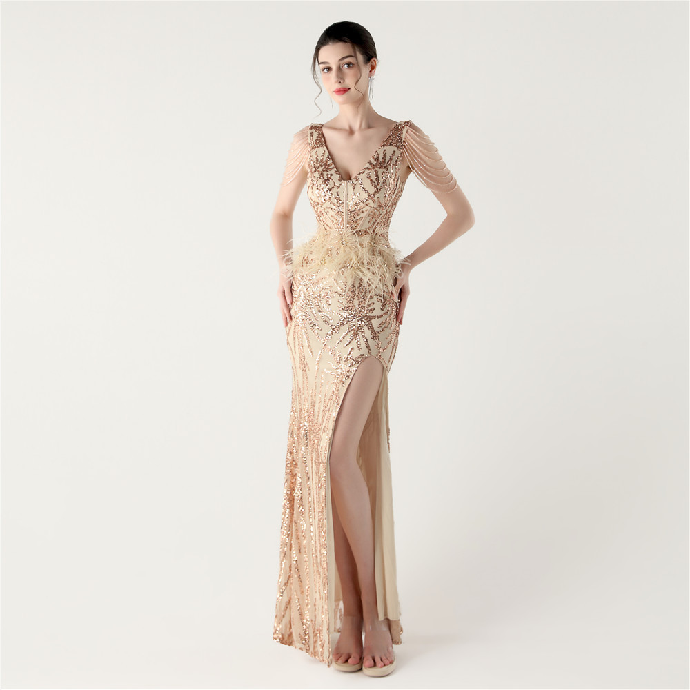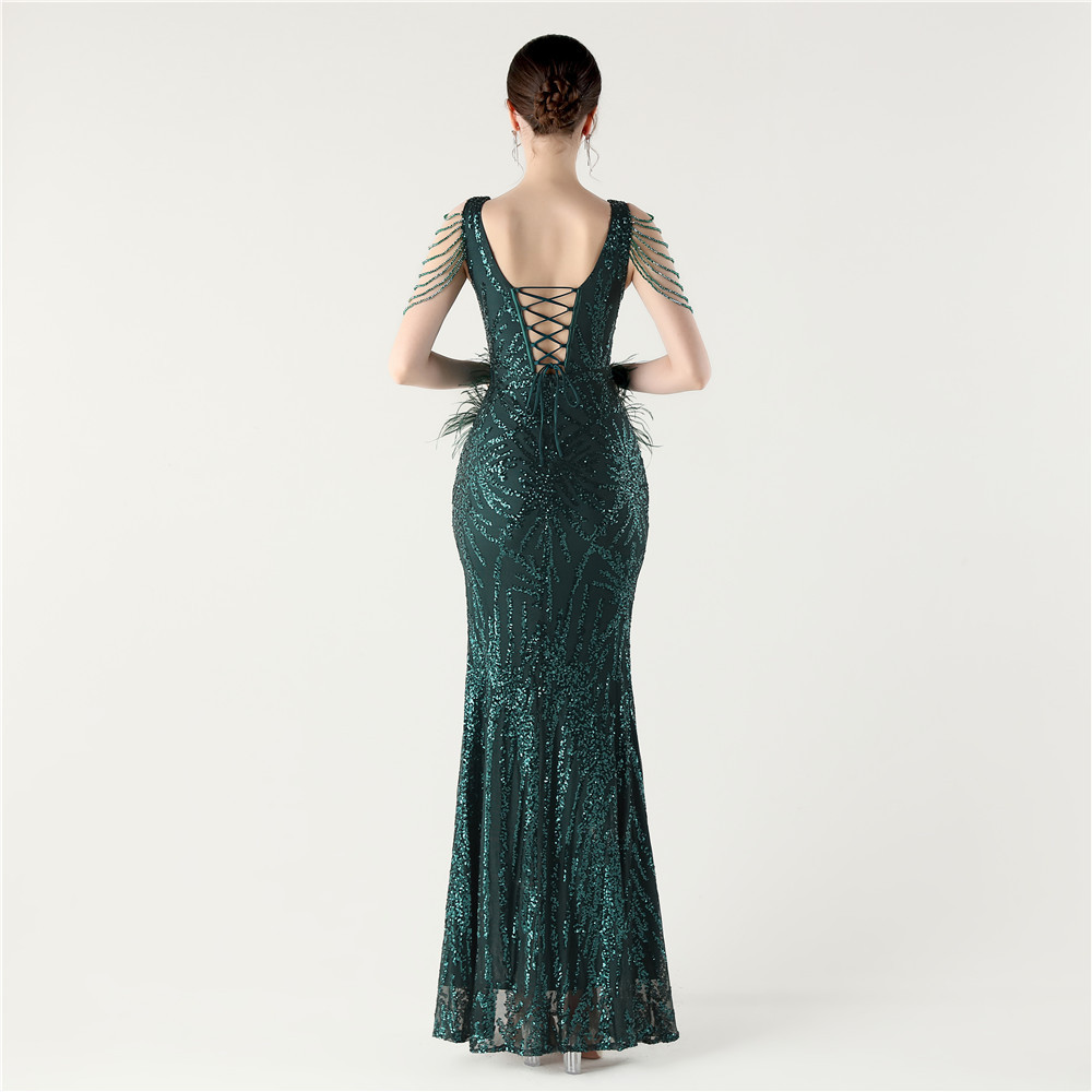 スパンコール & ポリエステル ロングイブニングドレス 選択のためのより多くの色 一つ