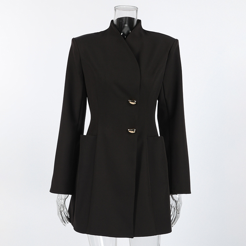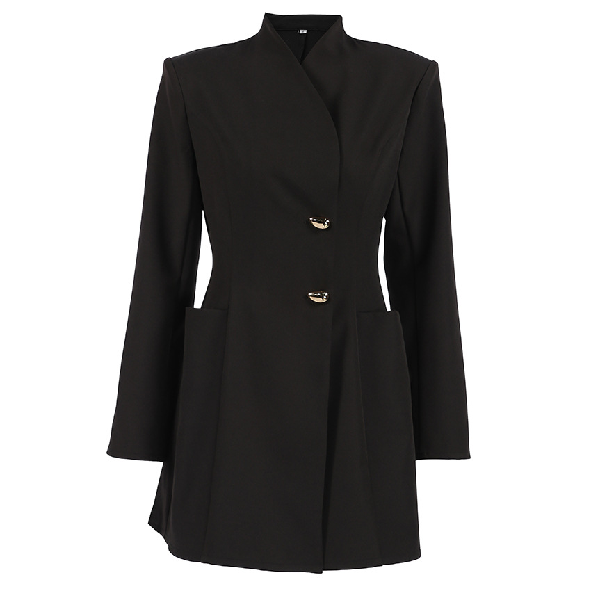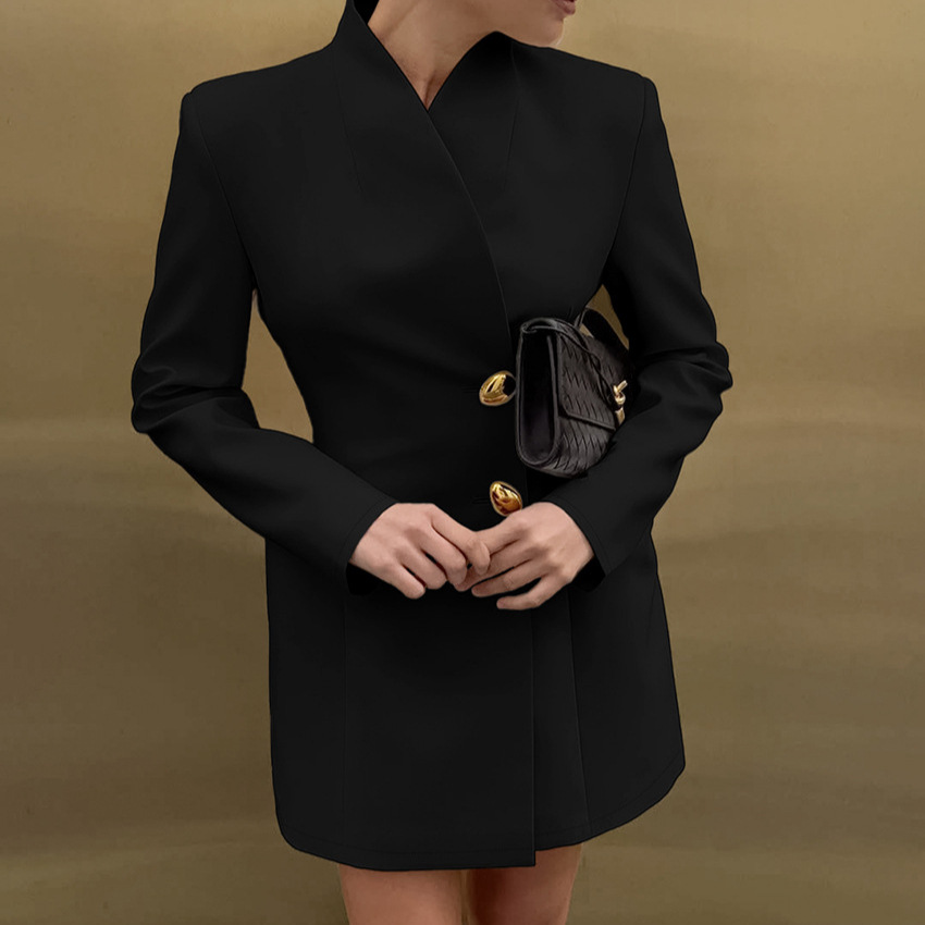 スパンデックス & ポリエステル 秋冬ドレス 単色 黒 一つ