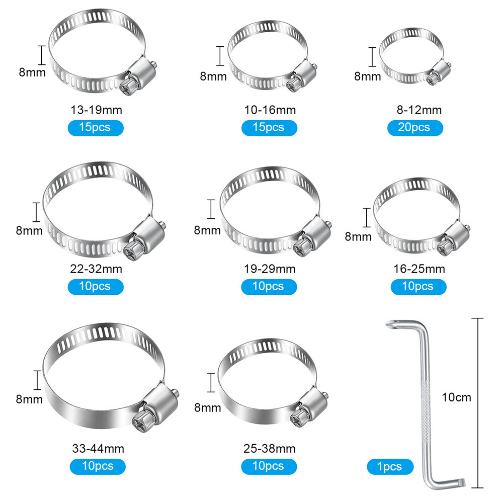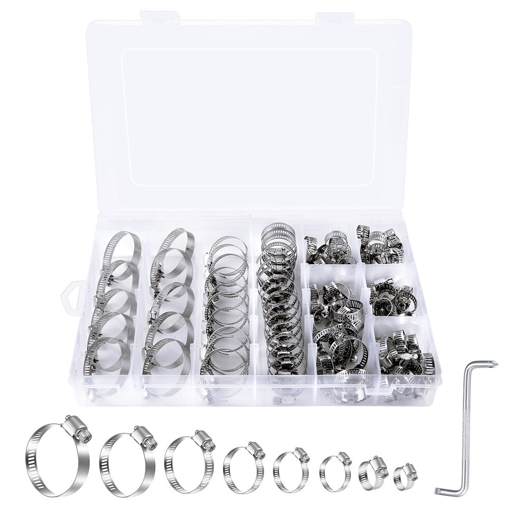 101x Verstelbare Slangklemmen 8 Maten Wormwiel RVS Klem Assortiment