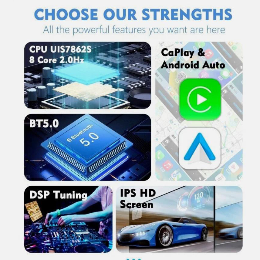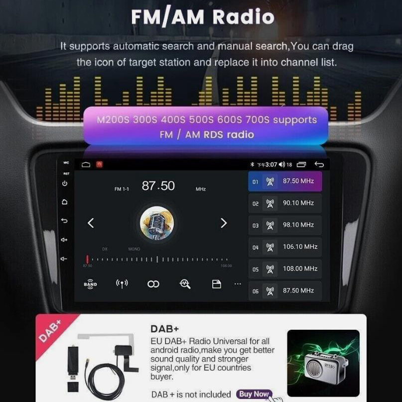 Bluetooth, DSP, WIFI, DAB+, Mirrorlink, MP3/MP4-speler, EQ