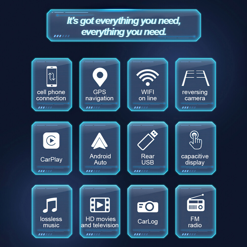 Carplay, FM/AM-radio, Mirror Link, RDS Carplay, FM/AM-radio, Mirror Link, RDS