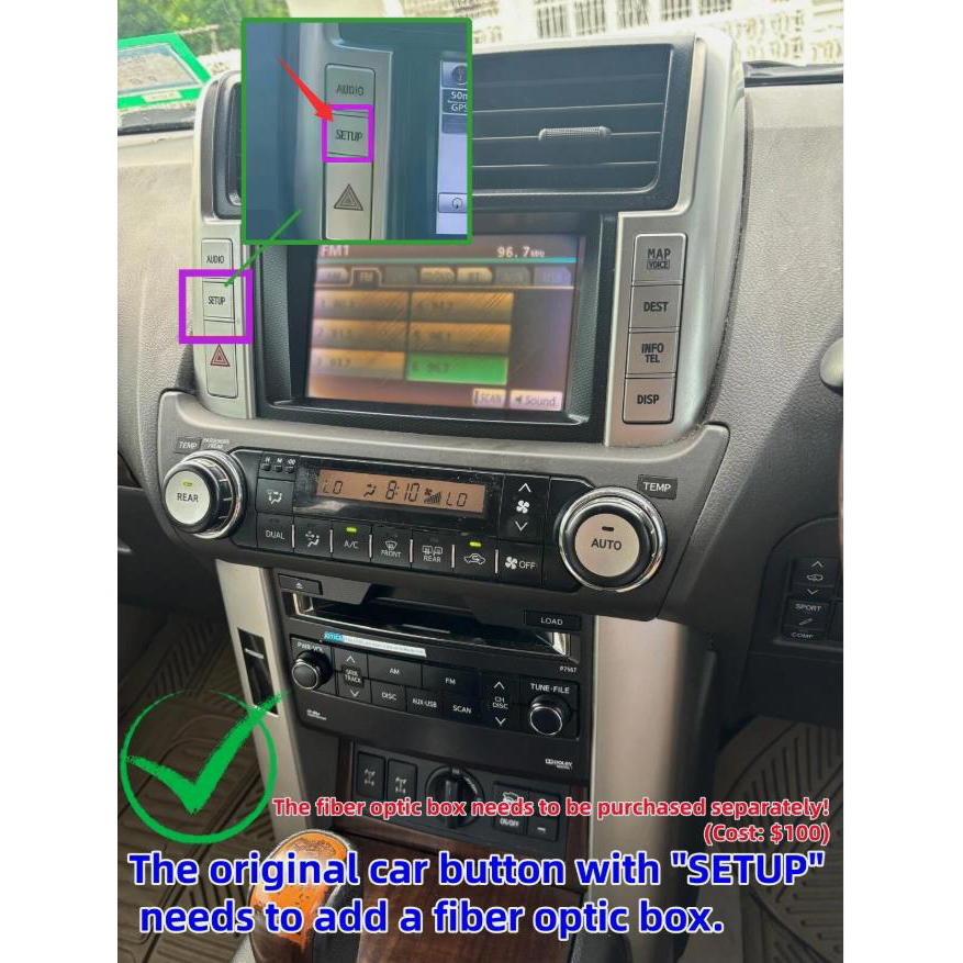 De originele middenconsole van de Toyota Prado heeft een "SETUP"-knop en er moet een extra glasvezelbox worden aangeschaft De originele middenconsole van de Toyota Prado heeft een "SETUP"-knop en er moet een extra glasvezelbox worden aangeschaft