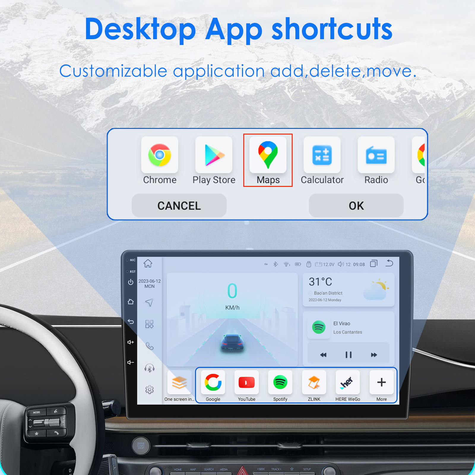 1280 * 800 Hoge resolutie, Android, GPS-navigatie, RCA, RDS, touchscreen, WiFi