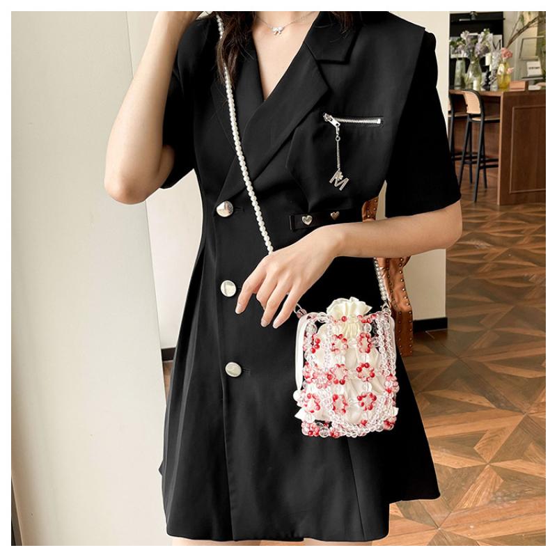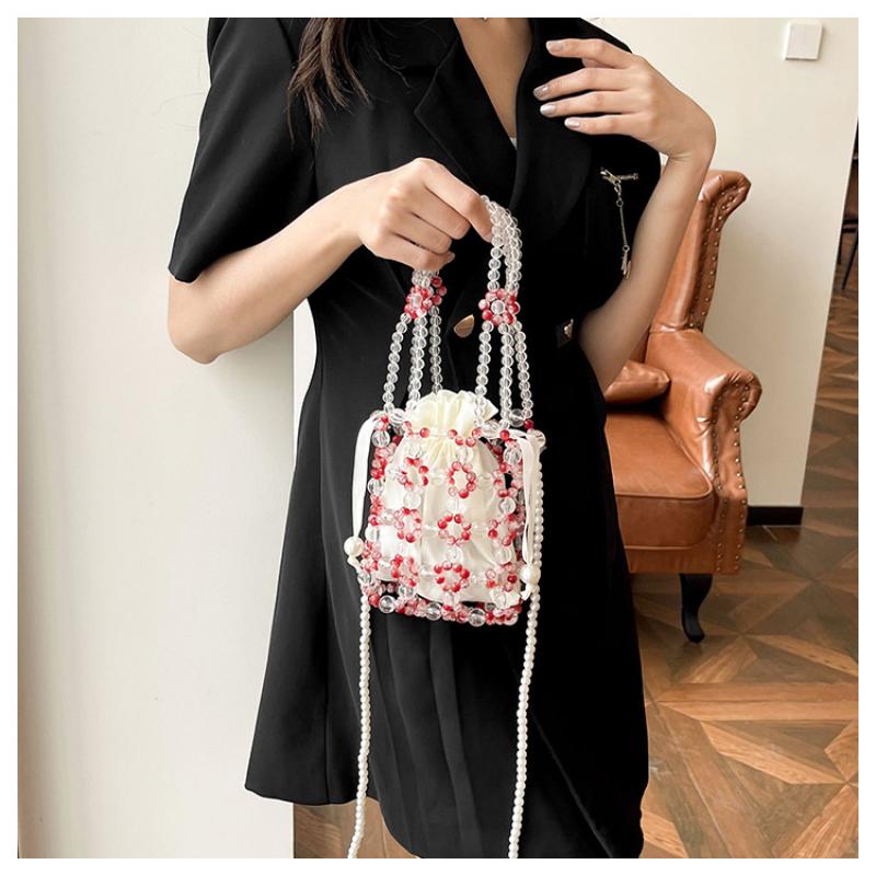 Gradient Ice Crack Hollow Bag Women's New Woven Handbag Handmade Shoulder Bag