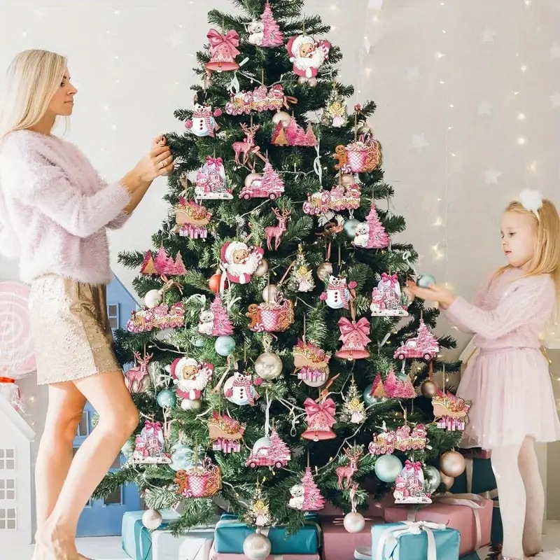 Hout Kerstboom hangende Decoratie Afgedrukt meer kleuren naar keuze Instellen
