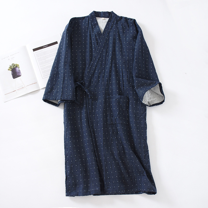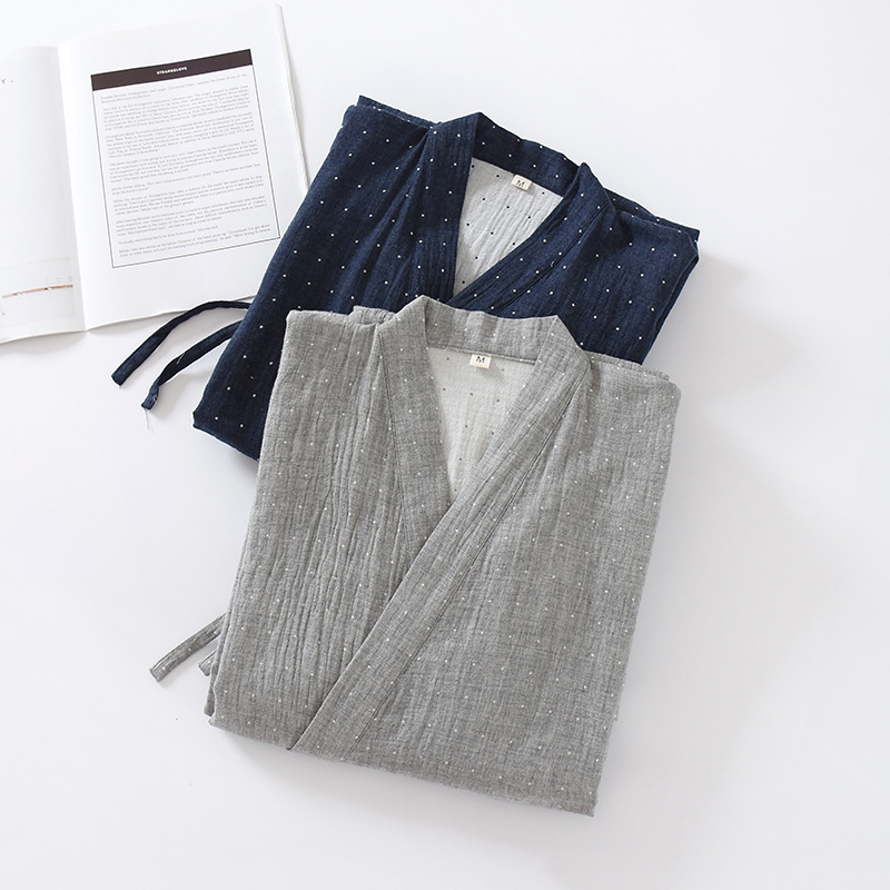 Navy Blue Yarn-dyed Dot ~ RobeGrey Dot ~ Robedark gray Yarn-dyed Dot ~ Robe