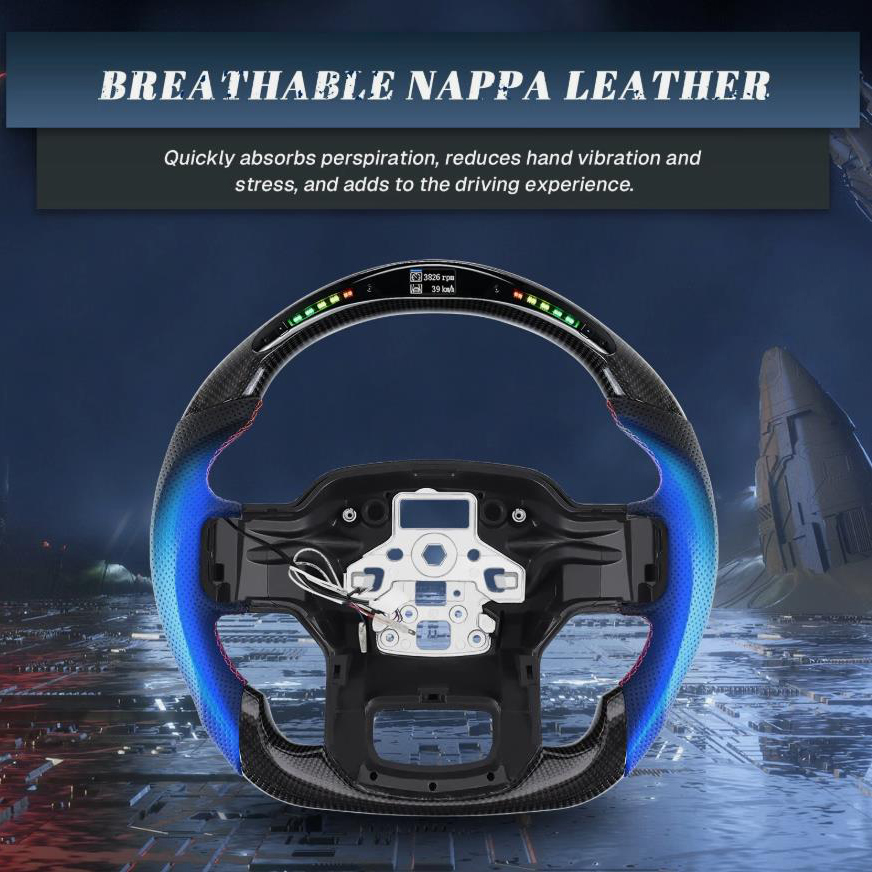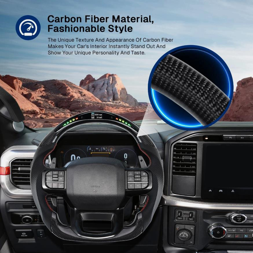 LED Zwart Echt Koolstofvezel Stuurwiel Voor Ford F150 2021-2023 Platte Bodem