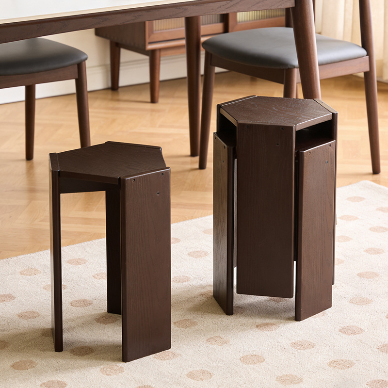 [Walnut Color] Hexagonal Stool (Set of 2)[Black] Hexagonal Stool (Set of 2)