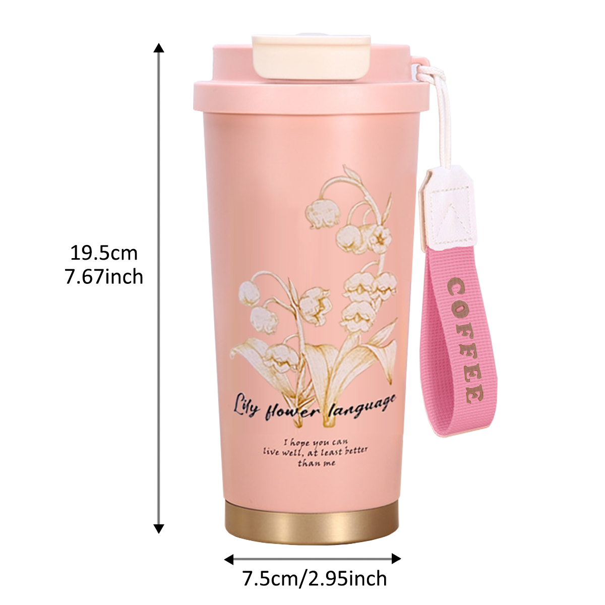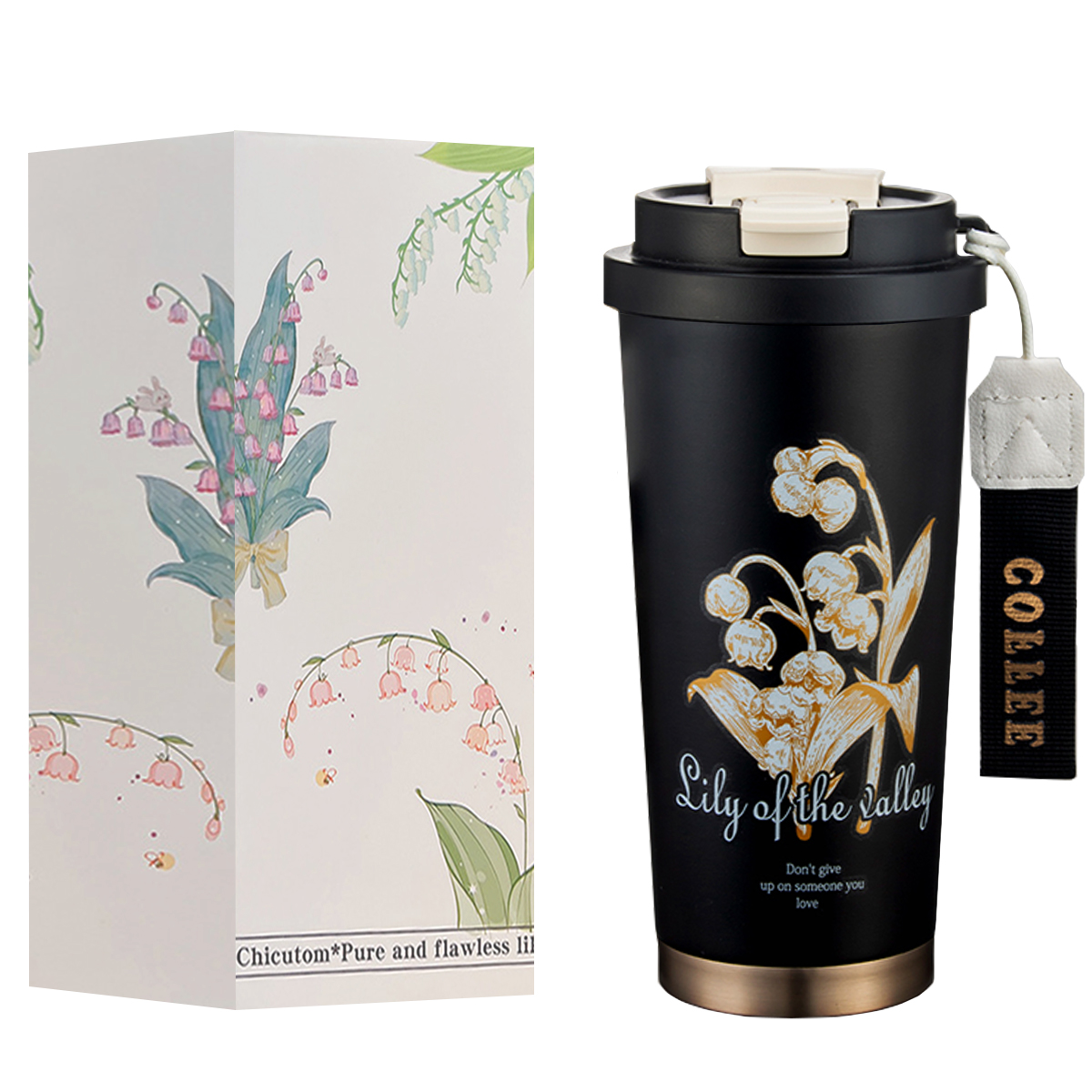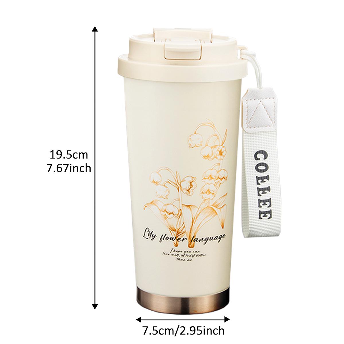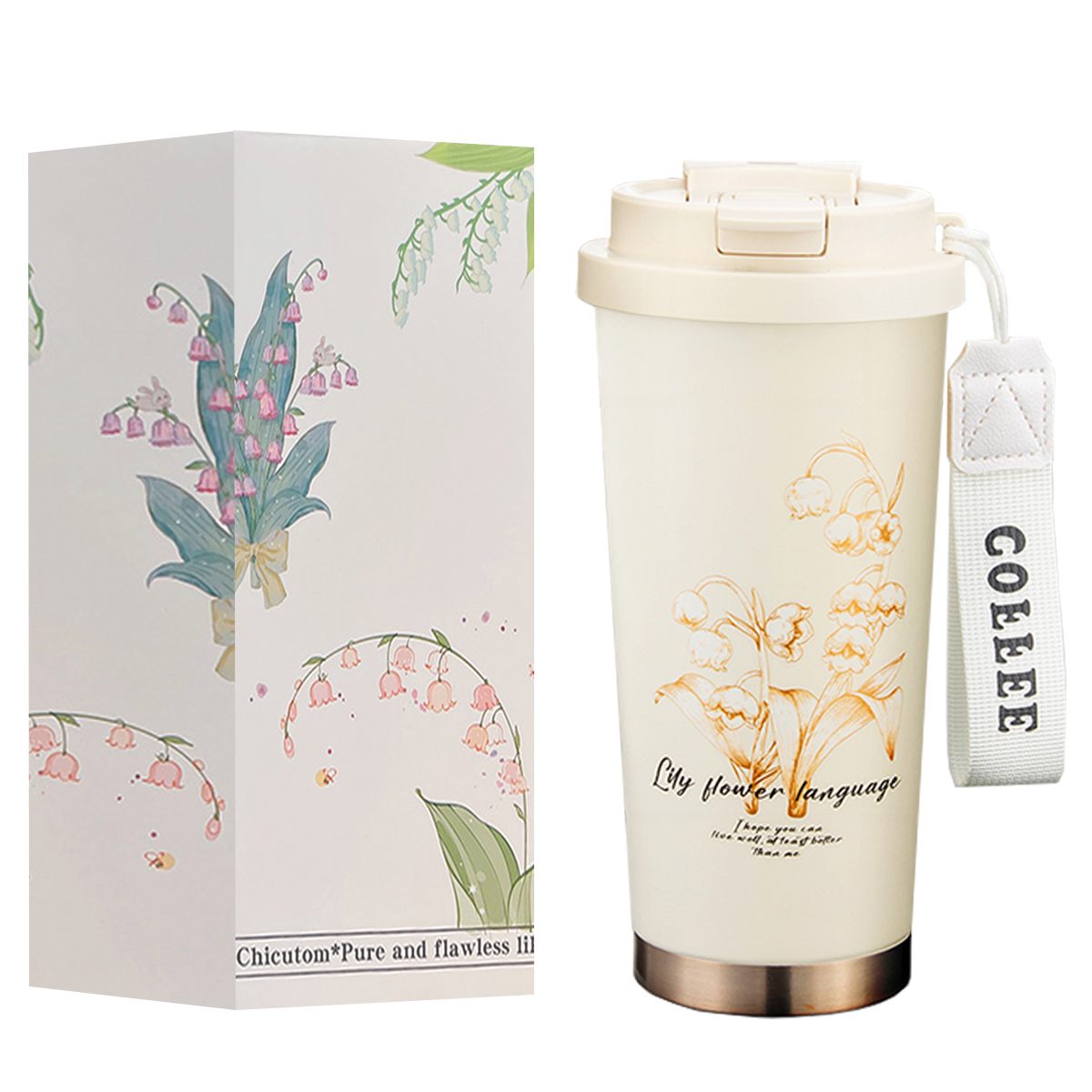 New Coffee Cup 316 Stainless Steel Ceramic Liner with Lanyard Portable Water Cup with Straw