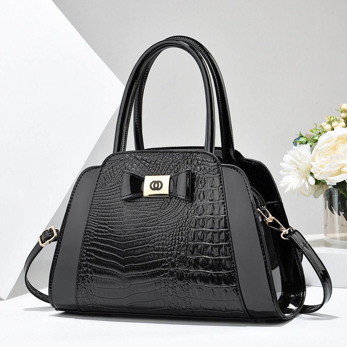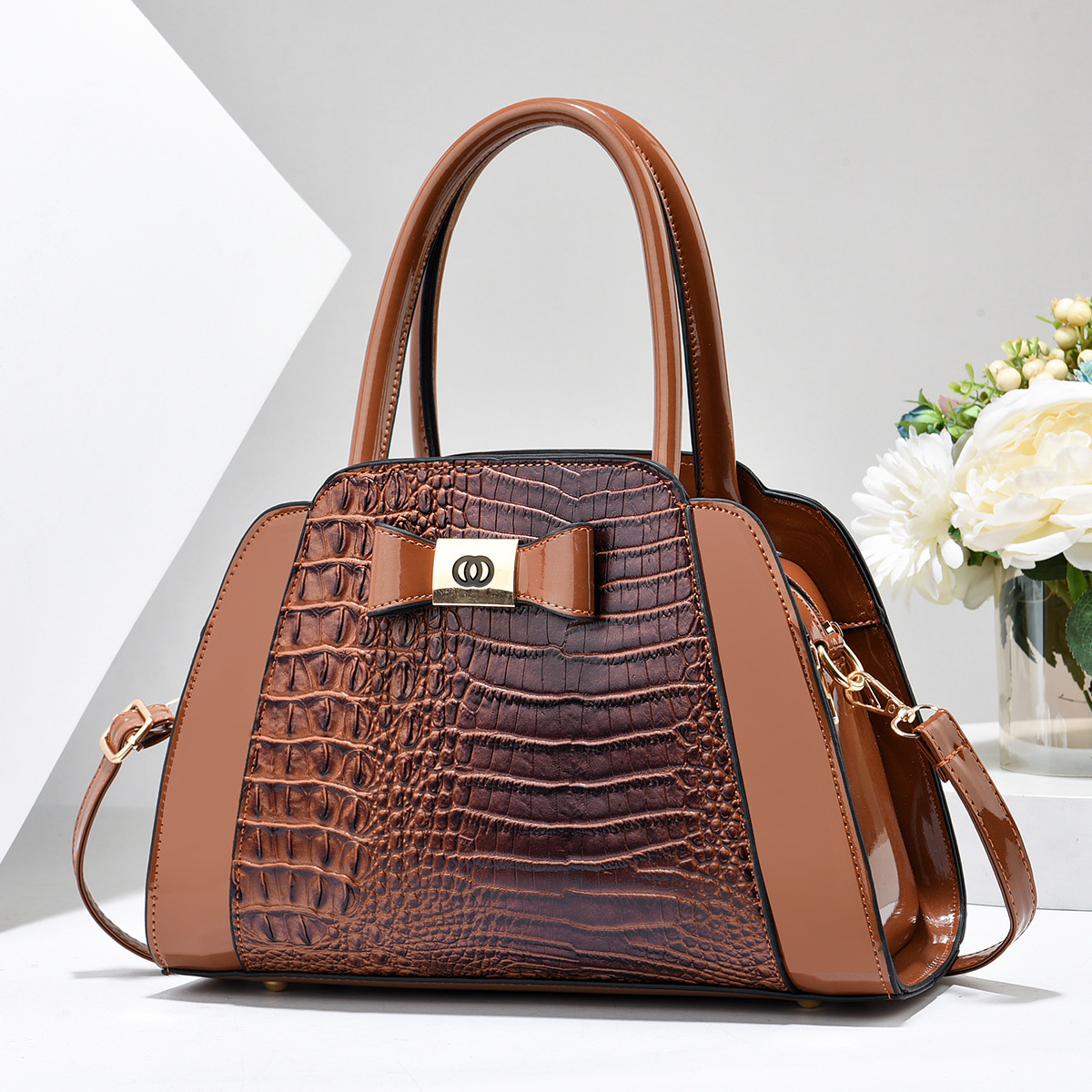 New women's bag casual portable shoulder messenger bag crocodile pattern