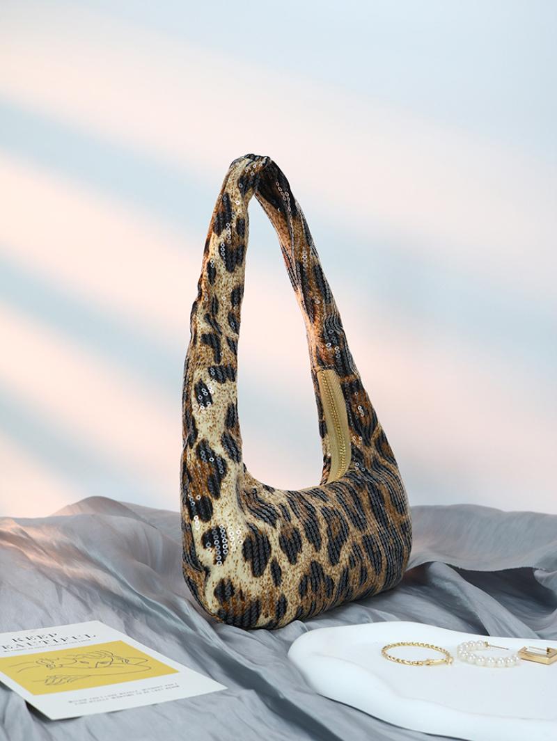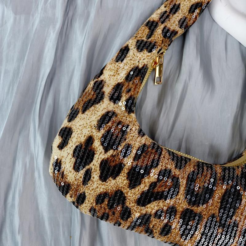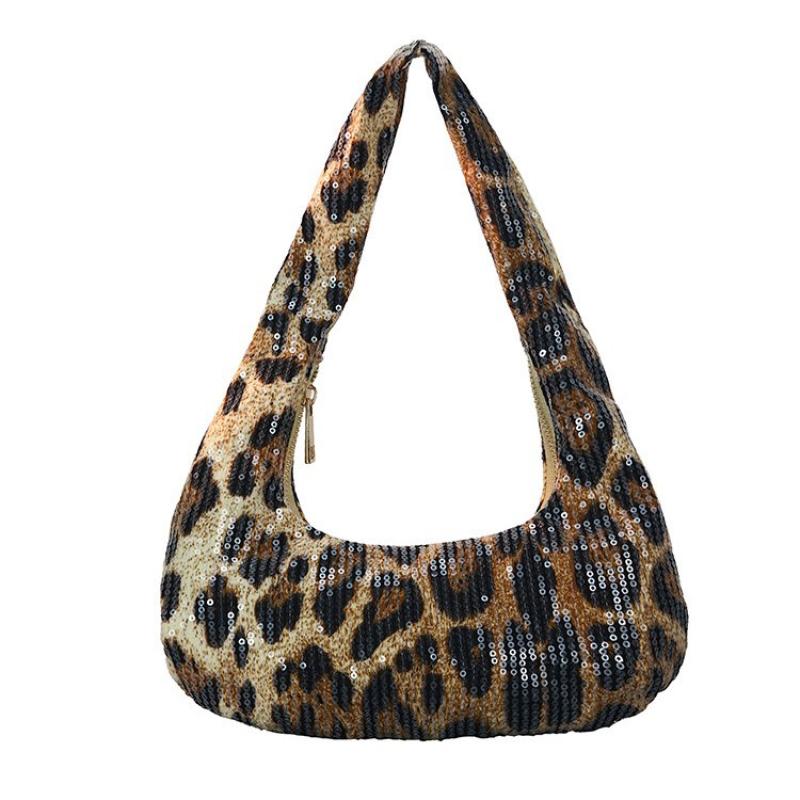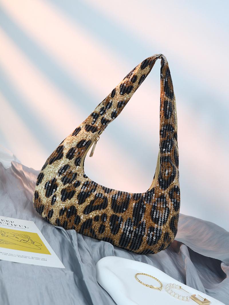 PU-leer & Polyester Schoudertas Pailletten Leopard stuk