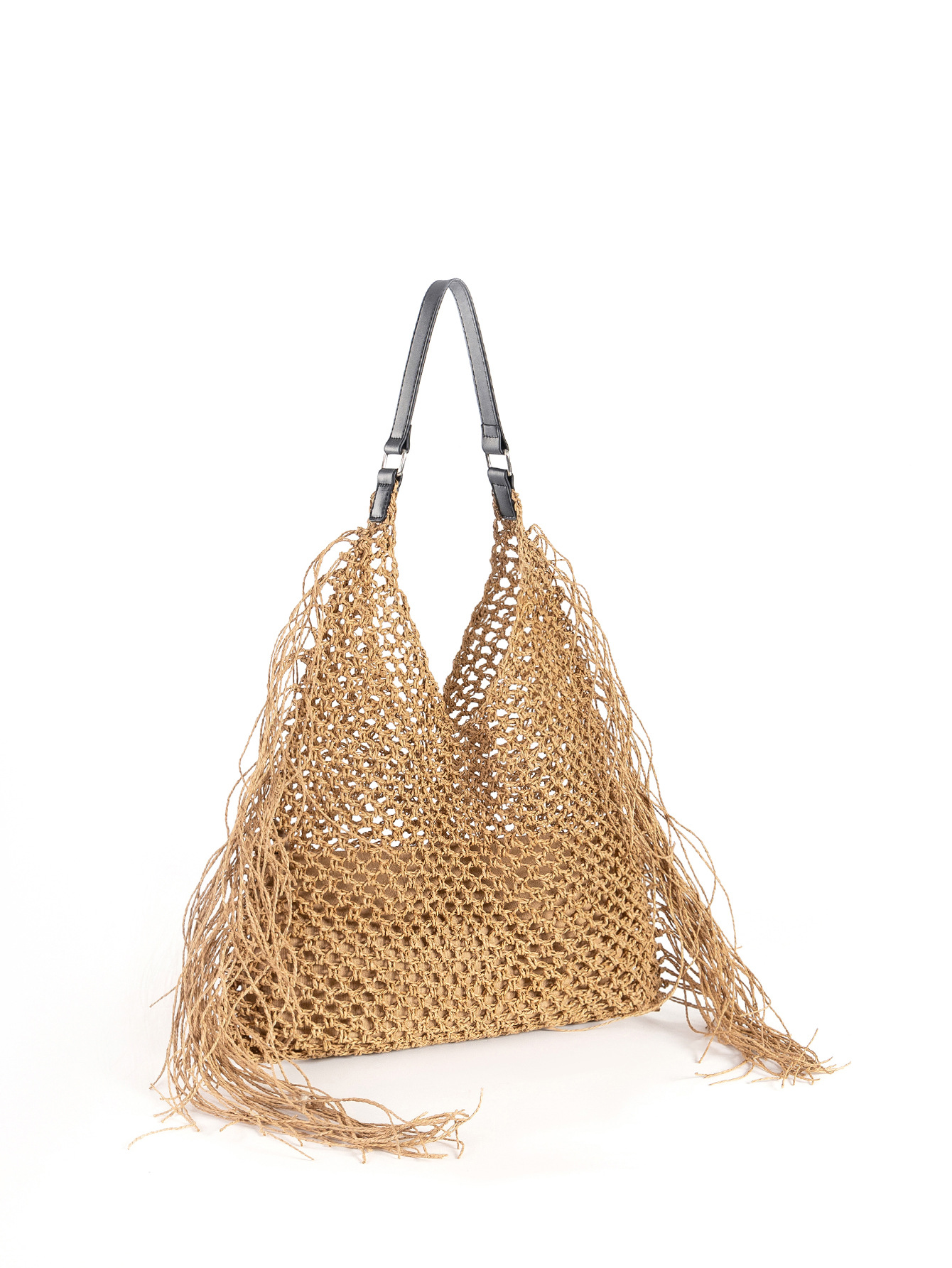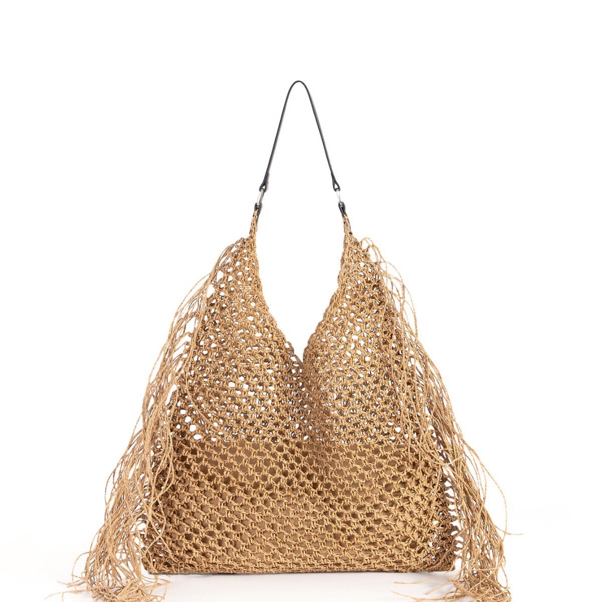 Papieren touw & Doek Geweven schoudertas Abrikoos stuk