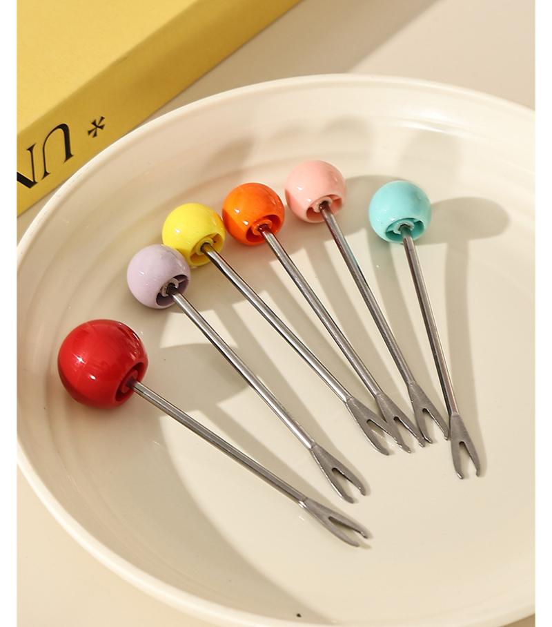 whiteyellowpinkblackwood grainfruit fork 6 pcs