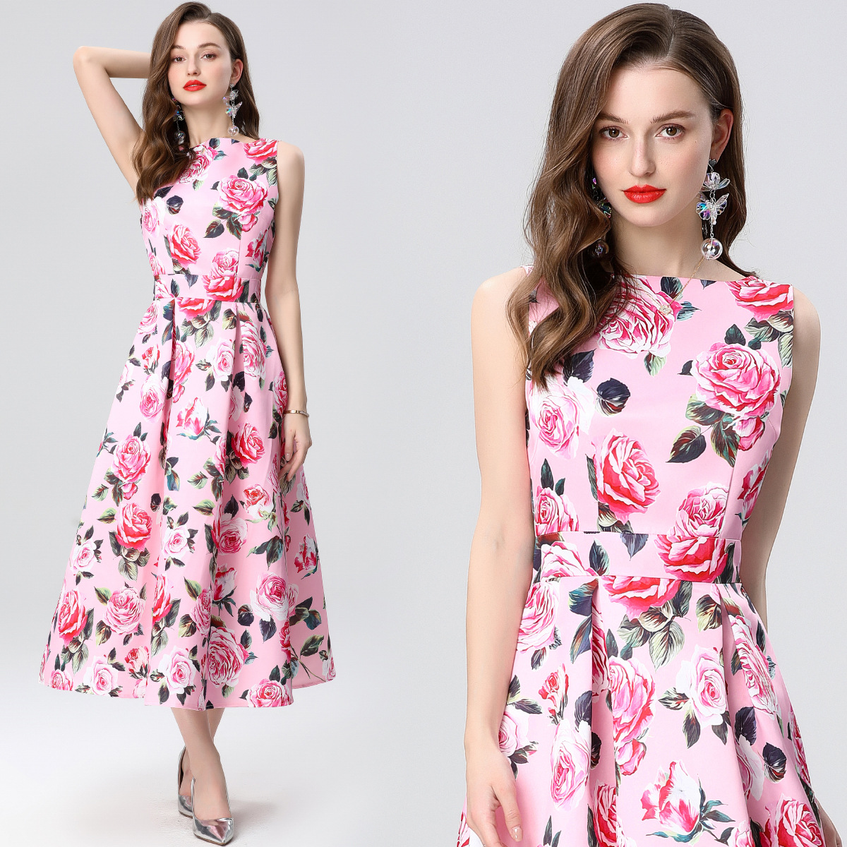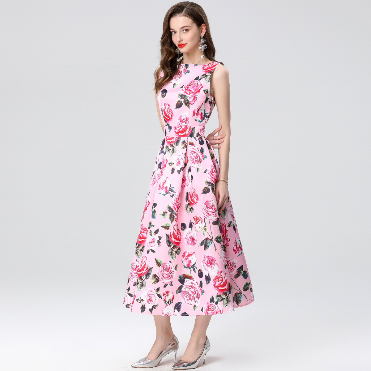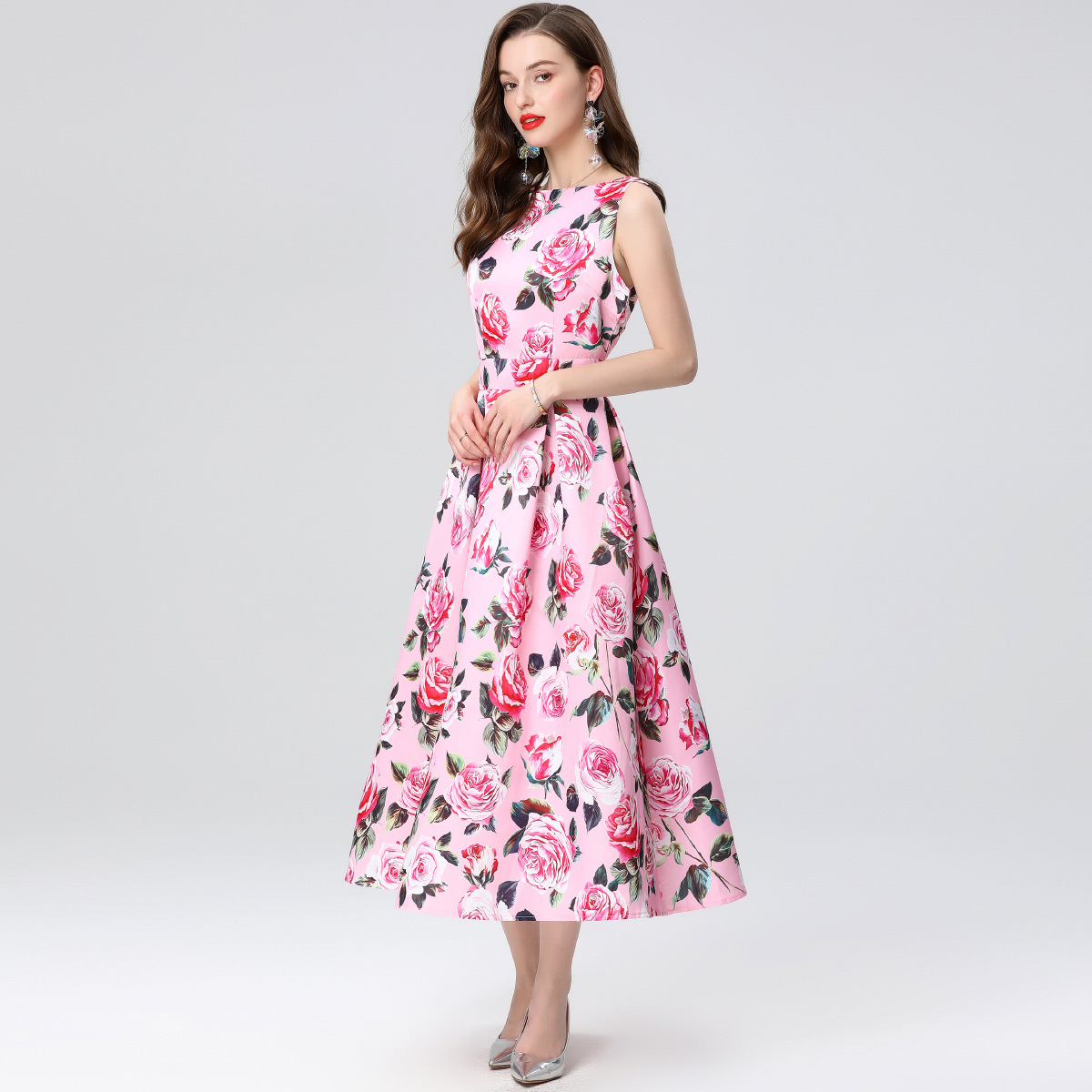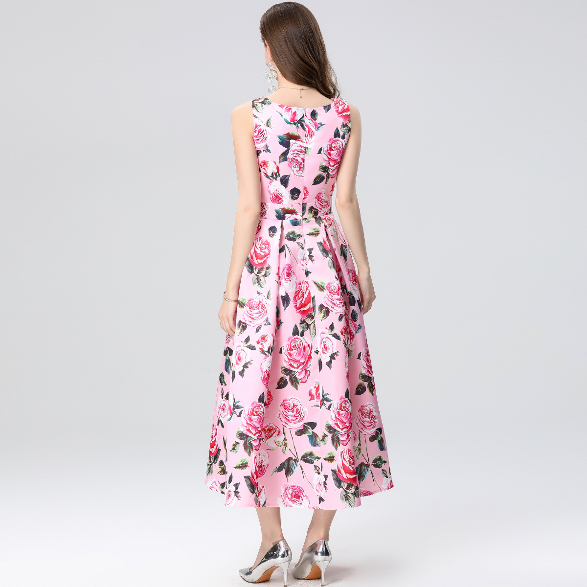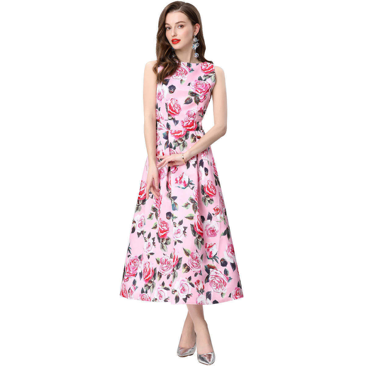 Polyester Lange avondjurk Afgedrukt Bloemen Roze stuk