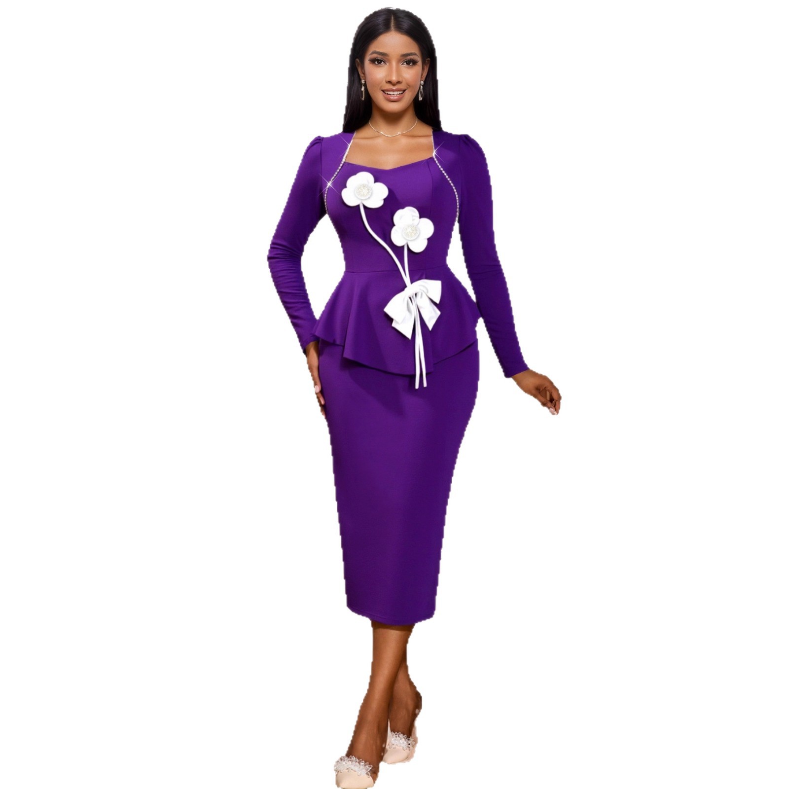 Polyester Sexy Pakket Hip Jurken Paarse stuk