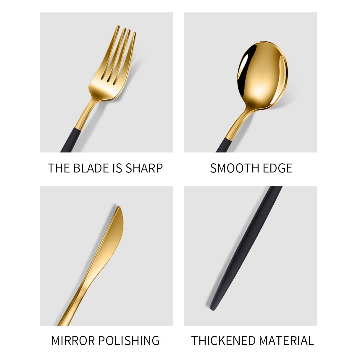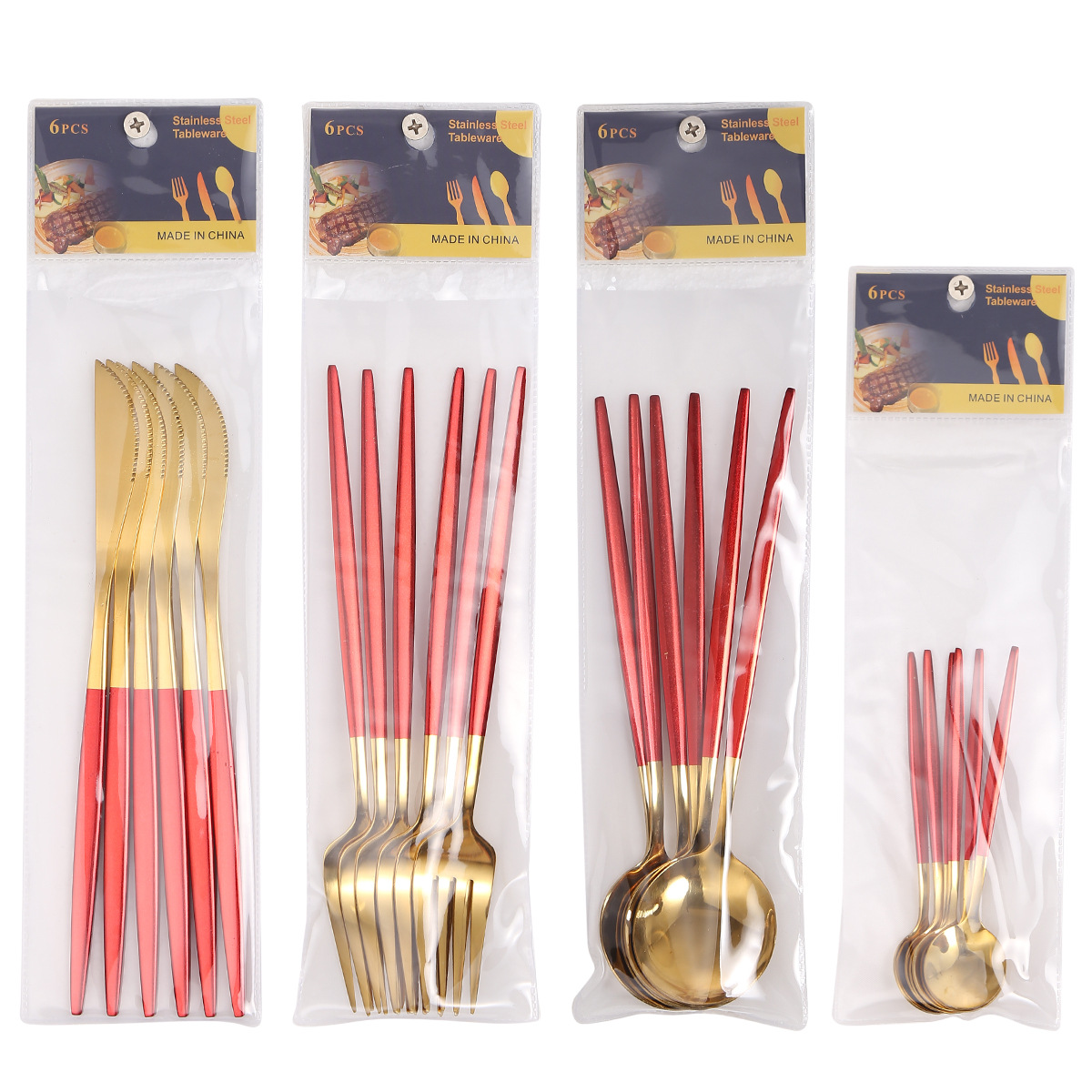 Dining knife 6pcs/Black GoldSpoon 6pcs/Black GoldDining Fork 6pcs/Black GoldTea Spoon 6pcs/Black GoldDining knife 6pcs/Red GoldDinner spoon 6pcs/Red GoldDining Fork 6pcs/Red GoldTea Spoon 6pcs/Red GoldDining knife 6pcs/dark green goldSpoon 6pcs/dark green goldDining Fork 6pcs/dark green goldTea Spoon 6pcs/dark green goldDining knife 6PCS/powder goldMeal spoon 6pcs/powder goldFork 6pcs/powder goldTea Spoon 6pcs/powder goldDining knife 6pcs/Blue GoldSpoon 6pcs/Blue GoldDining Fork 6pcs/Blue GoldTea Spoon 6pcs/Blue GoldDining knife 6pcs/PlatinumSpoon 6pcs/PlatinumFork 6pcs/PlatinumTea Spoon 6pcs/Platinum