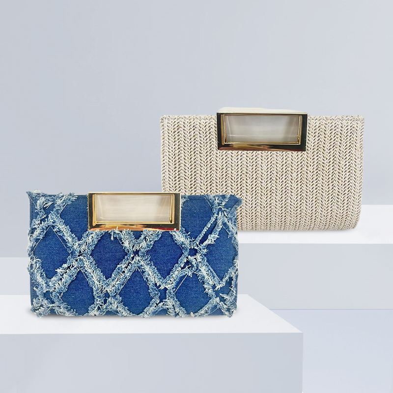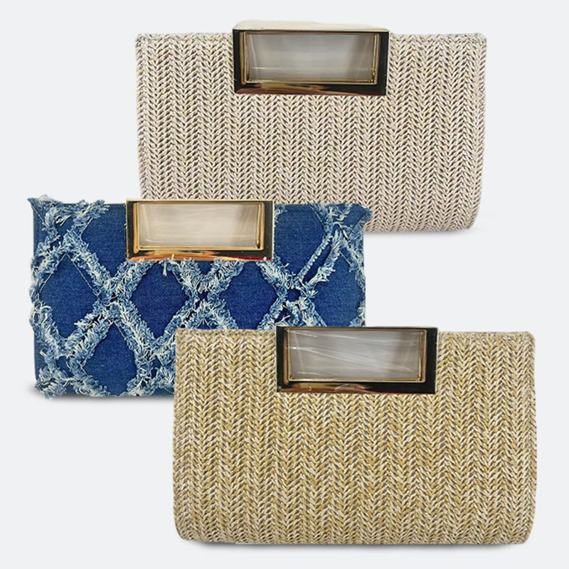 Stro & PU-leer & Denim Clutch Tas meer kleuren naar keuze stuk