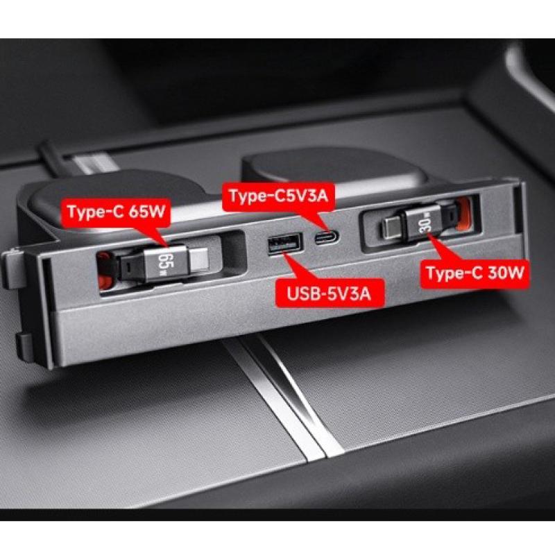 Upgrade 65W USB-oplaadhub voor Tesla Model 3 Highland 2024-2025 en nieuw Model Y Juniper 2026