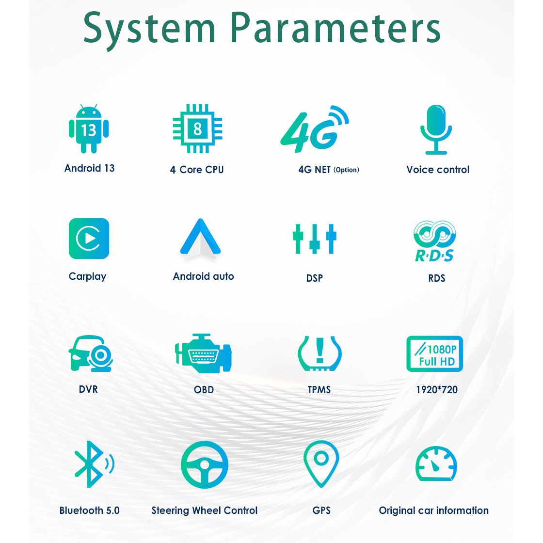 Bluetooth, Stuurwielbediening, Touchscreen, CarPlay, Android Auto, Picture in picture, Split screen, 1920*720 QLED Bluetooth, Stuurwielbediening, Touchscreen, CarPlay, Android Auto, Picture in picture, Split screen, 1920*720 QLED