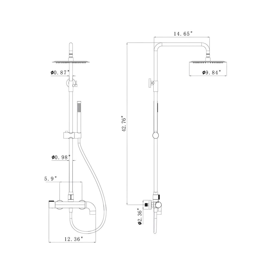 3. Single-function rain shower, Flow rate: 0.55 MPa (6.96 L/min), Material: ABS, Non-rotatable