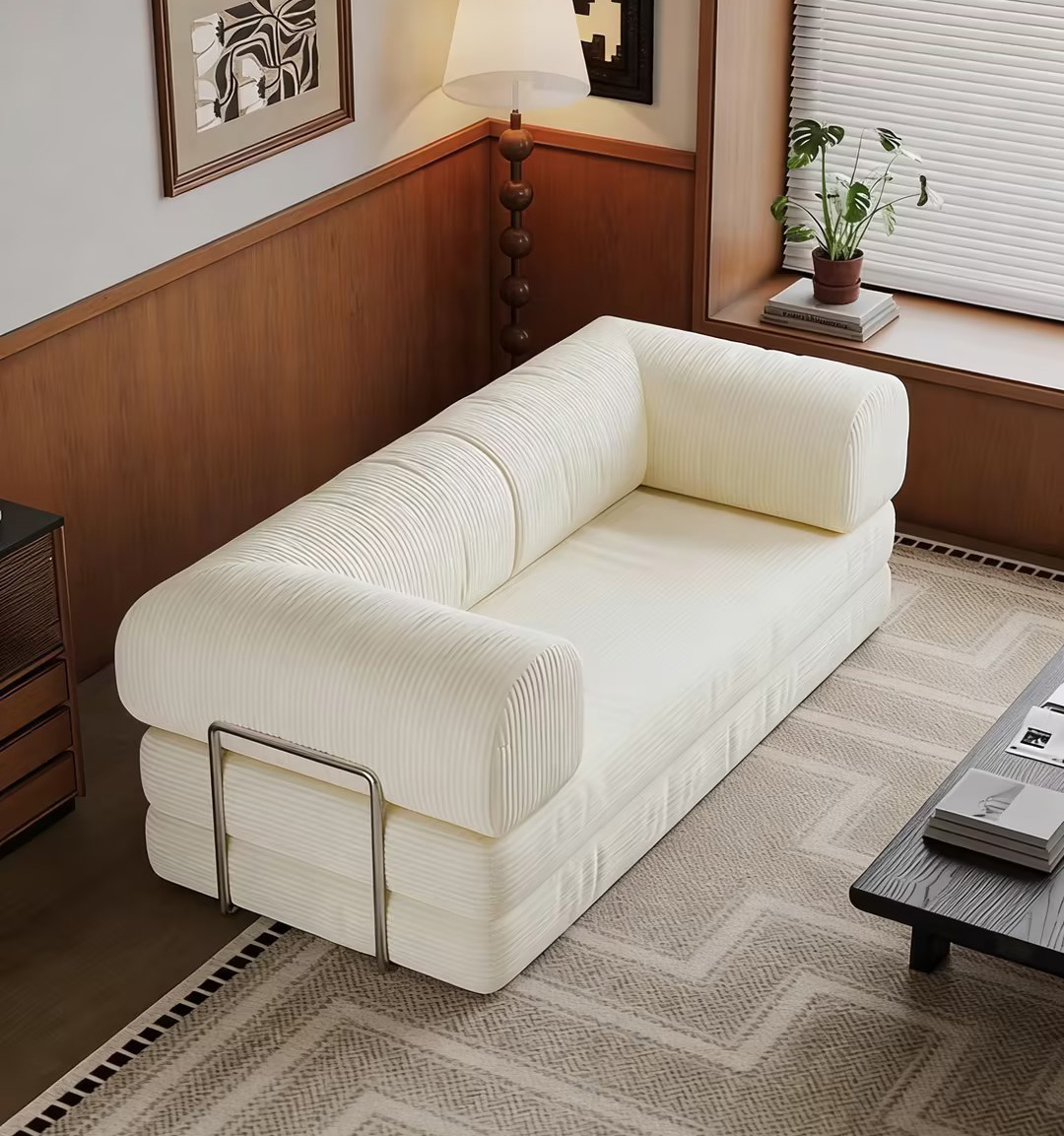 304 Stainless Steel & Chenille & Sponge & Corduroy Soft Sofa Bed Solid PC