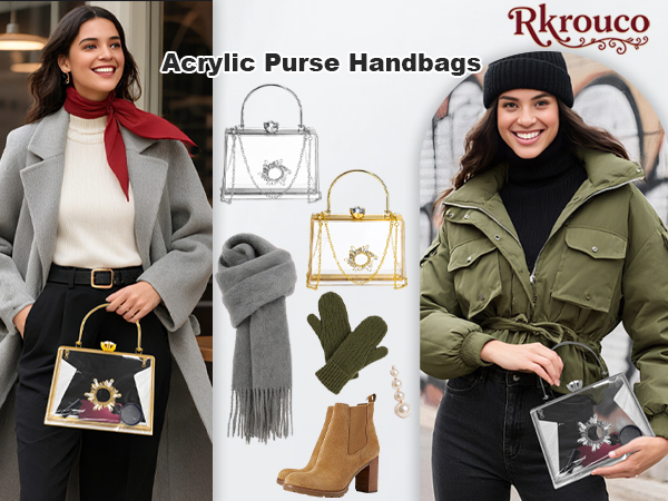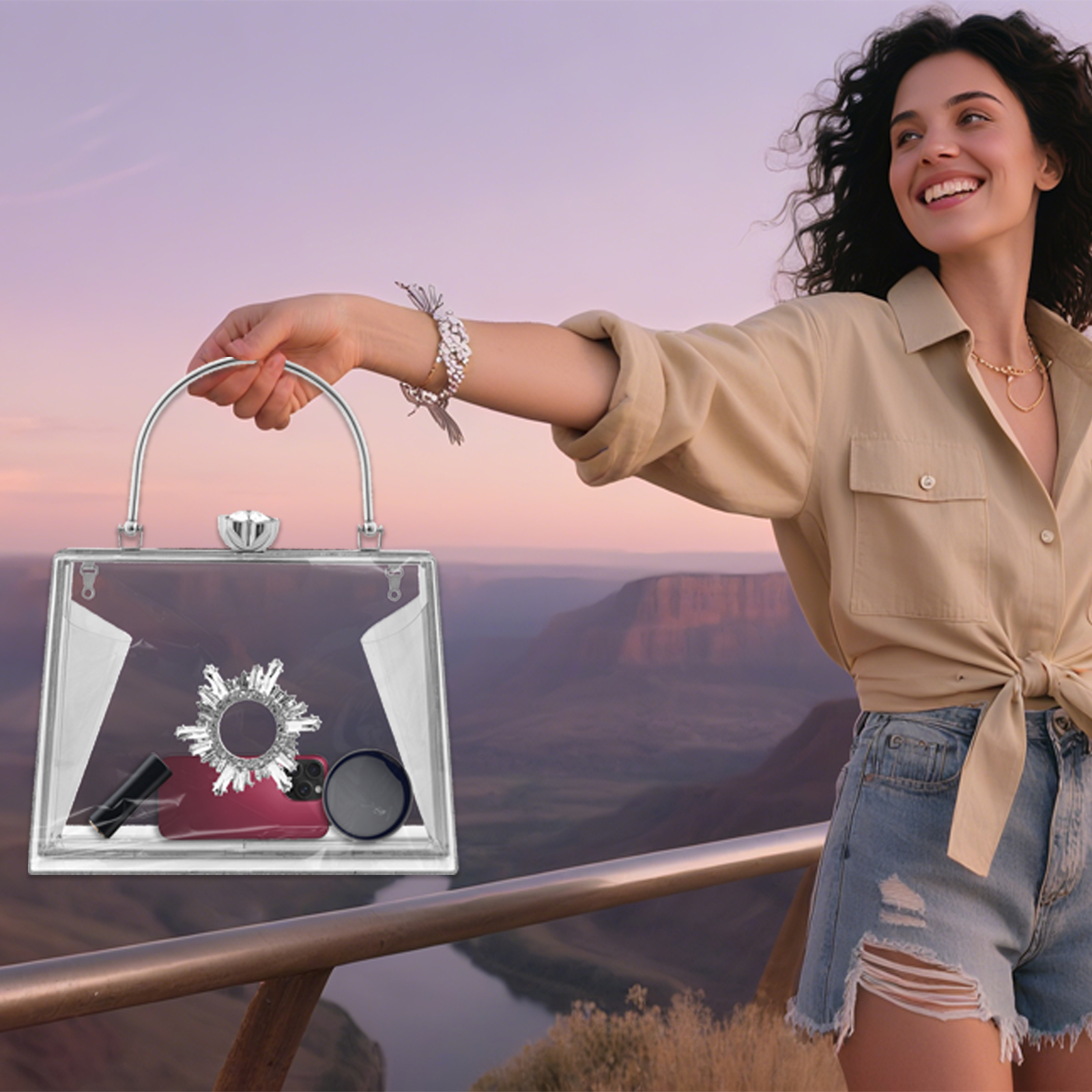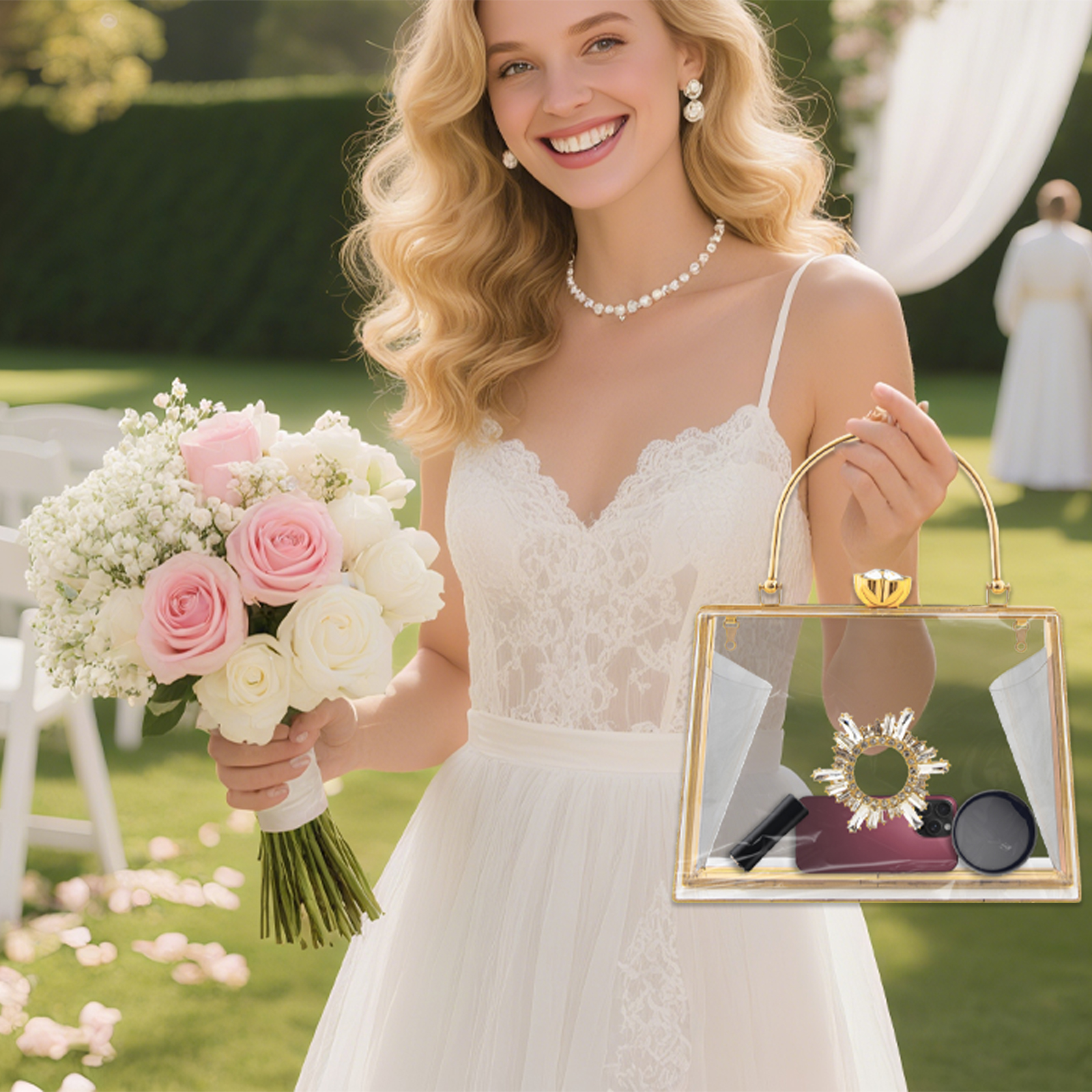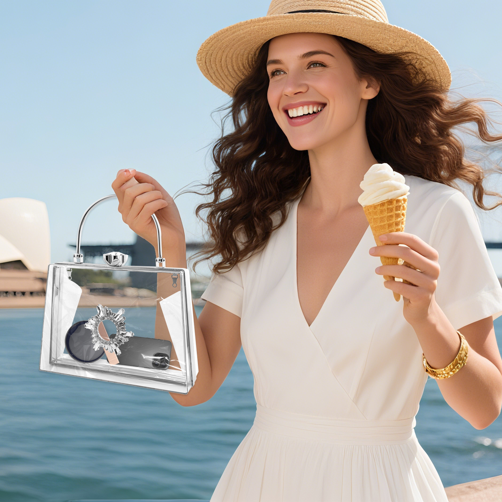 Acrylic Handbag attached with hanging strap & transparent & with rhinestone Metal Others PC