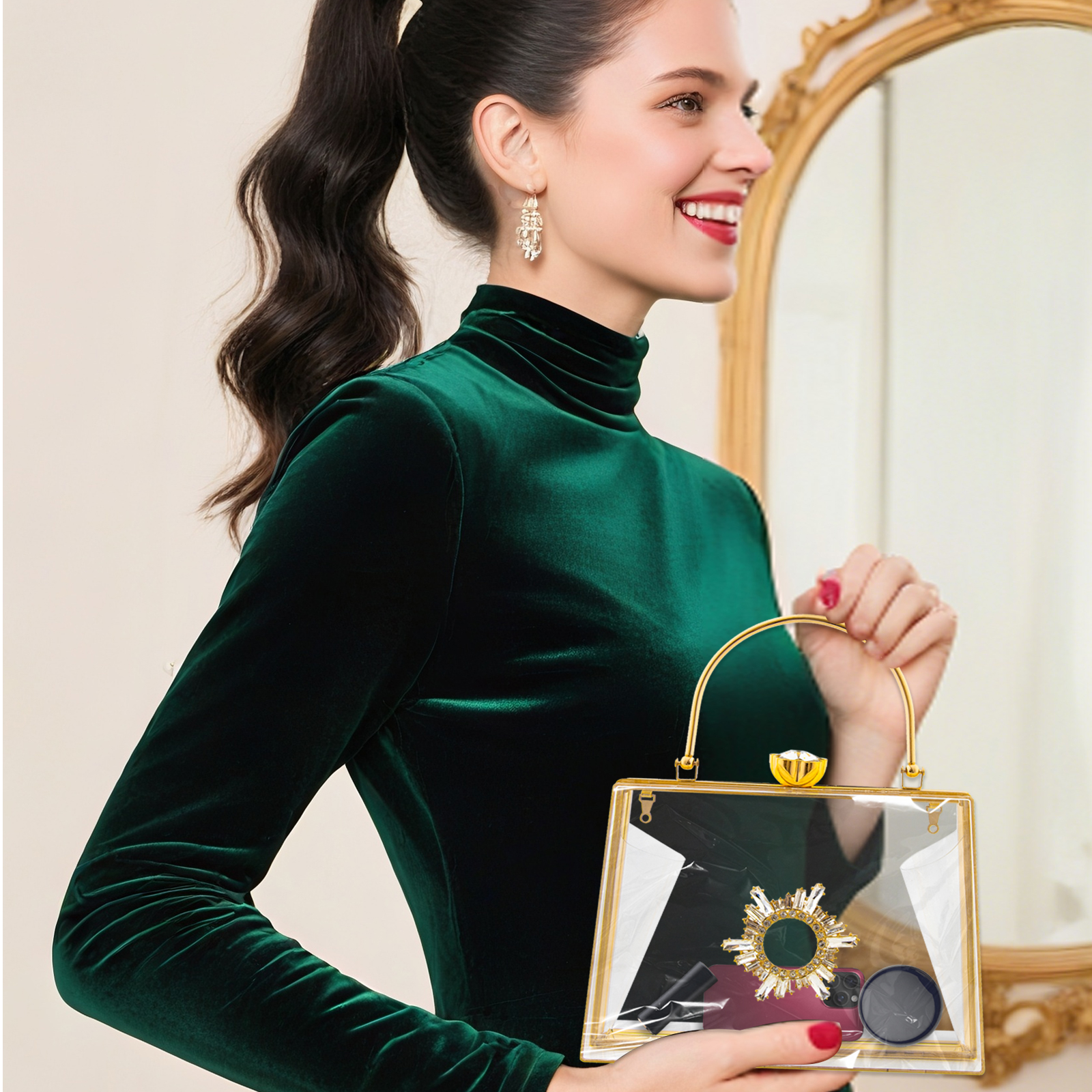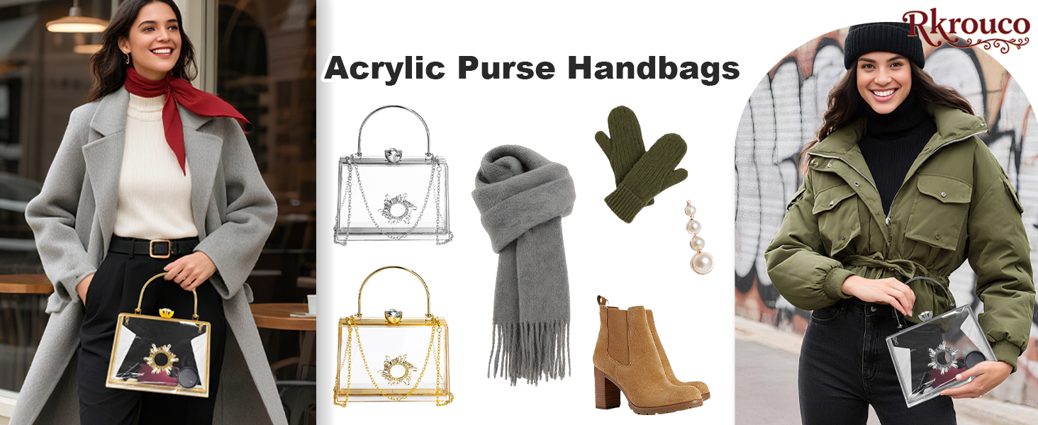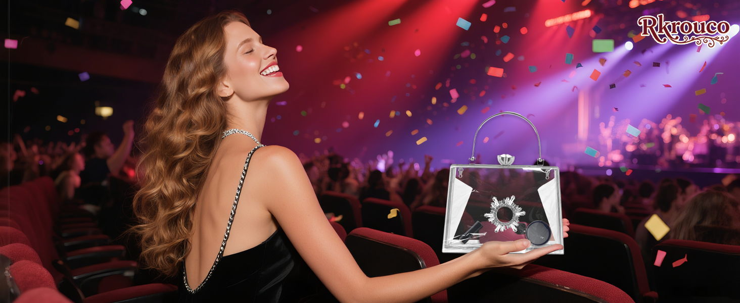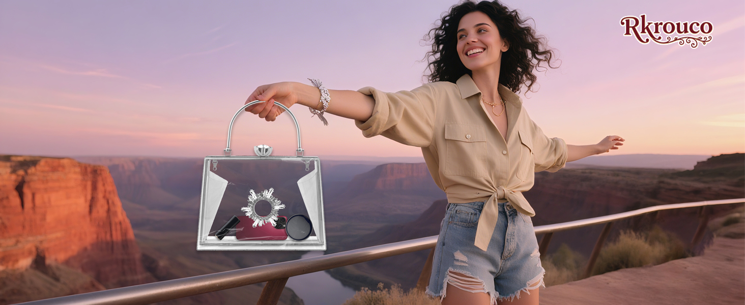 Acrylic Handbag attached with hanging strap & transparent & with rhinestone Metal Others PC