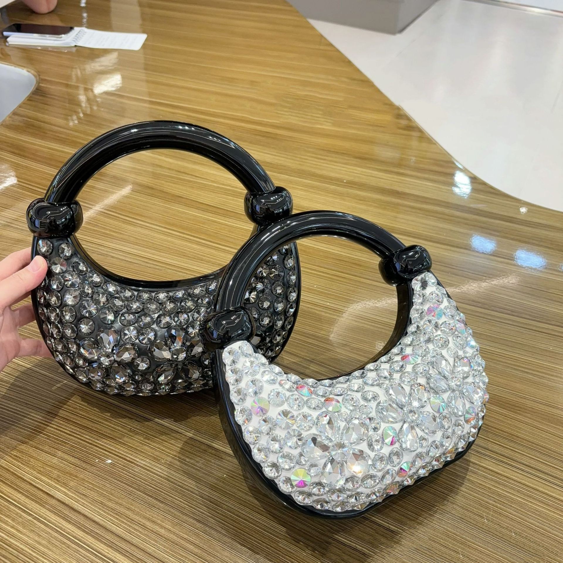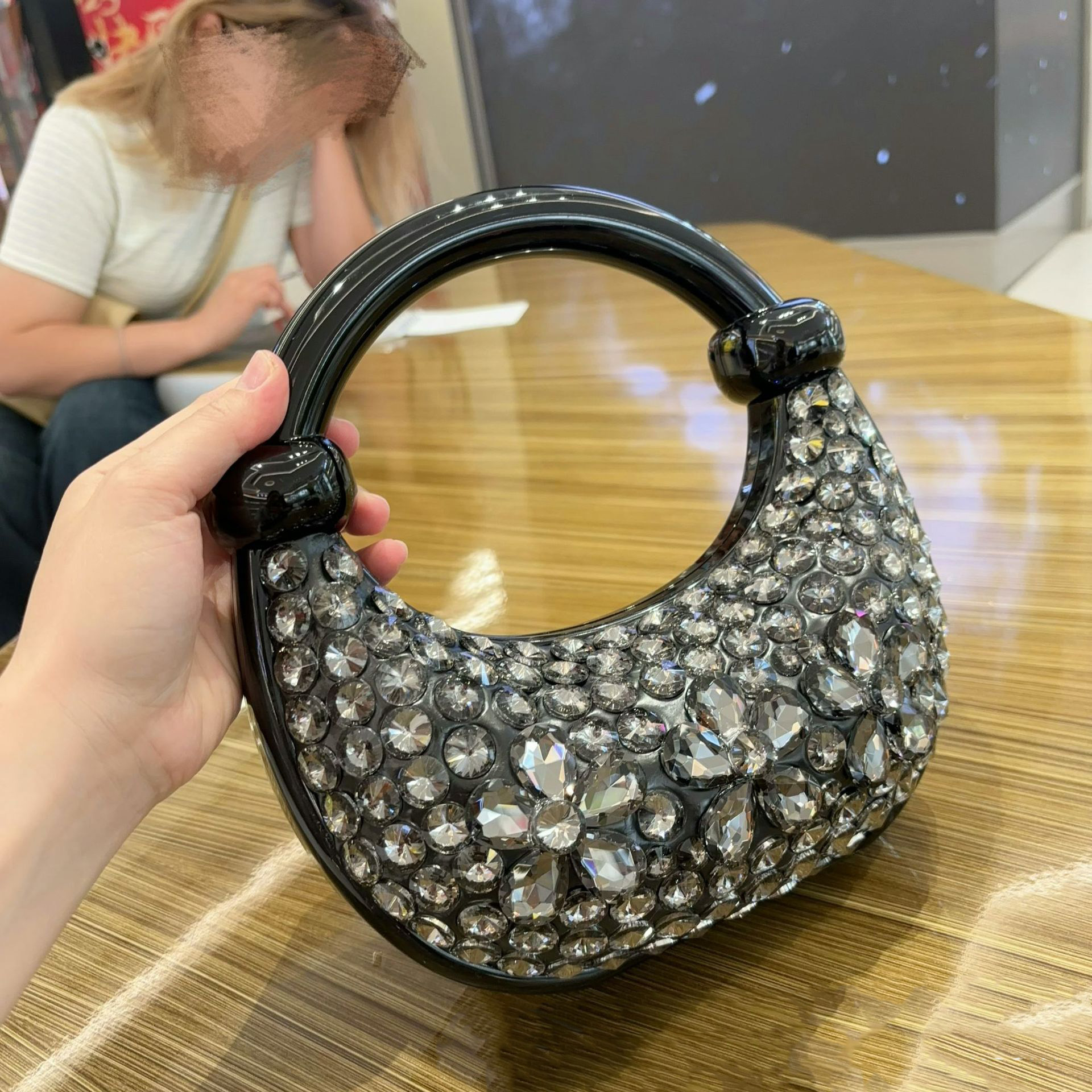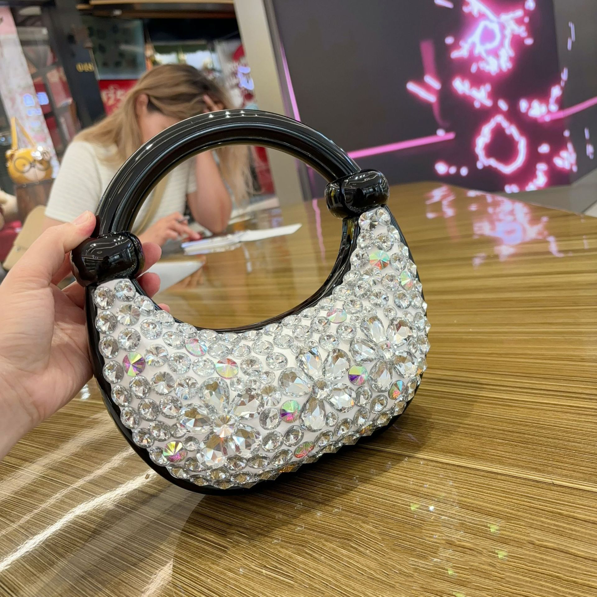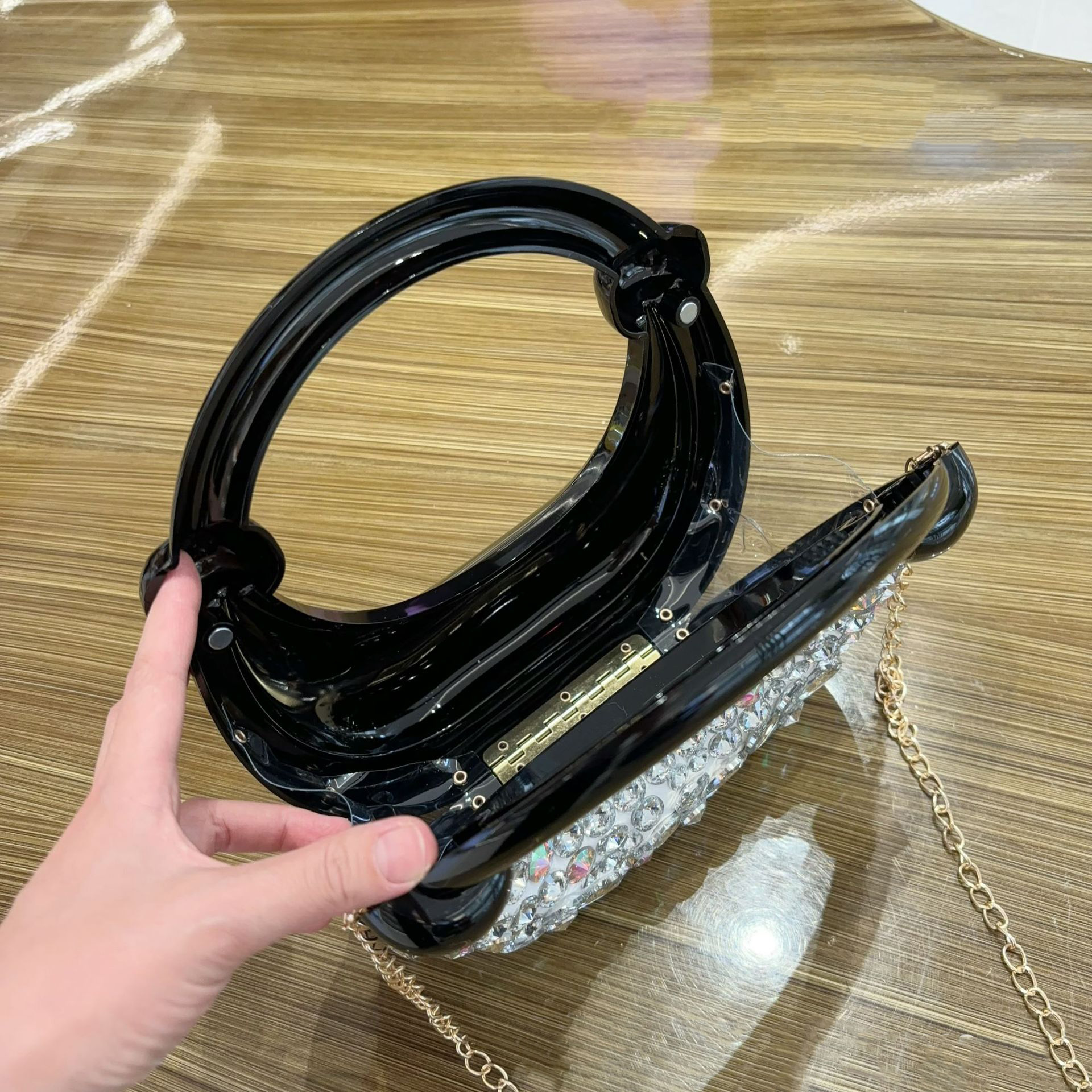 Acrylic Handbag soft surface & attached with hanging strap & with rhinestone PC