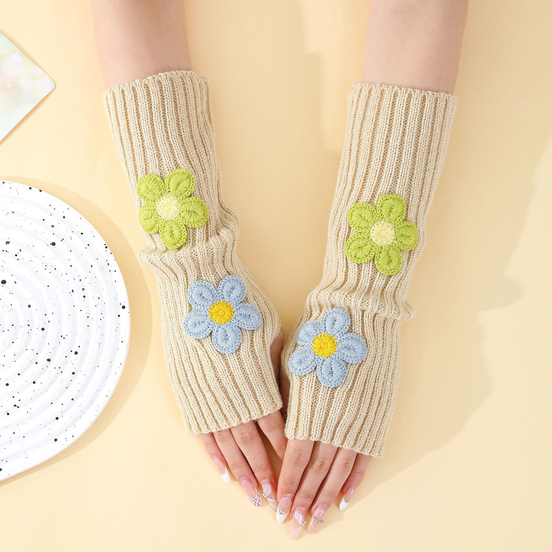 Acrylic windproof Half Finger Glove, thermal, embroidered, more colors for choice,  Pair