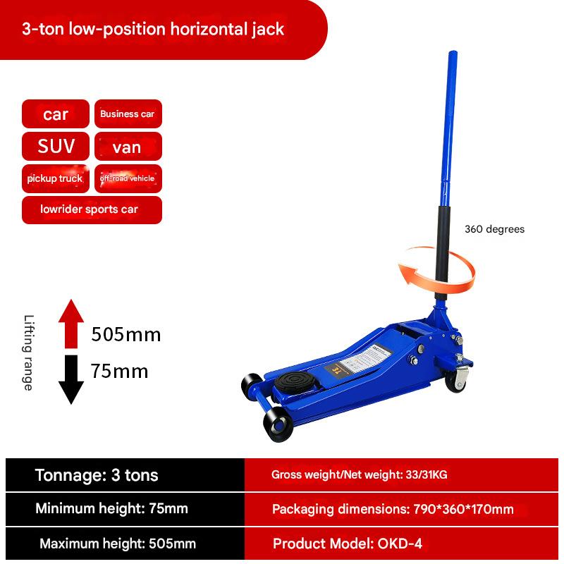 Hydraulic horizontal jack 3 tons car tire change maintenance tool oil pressure