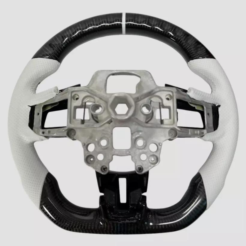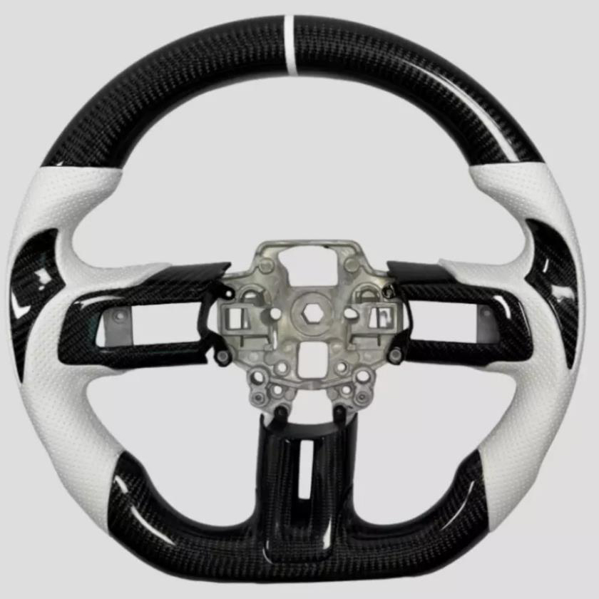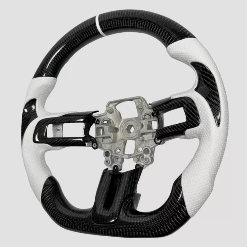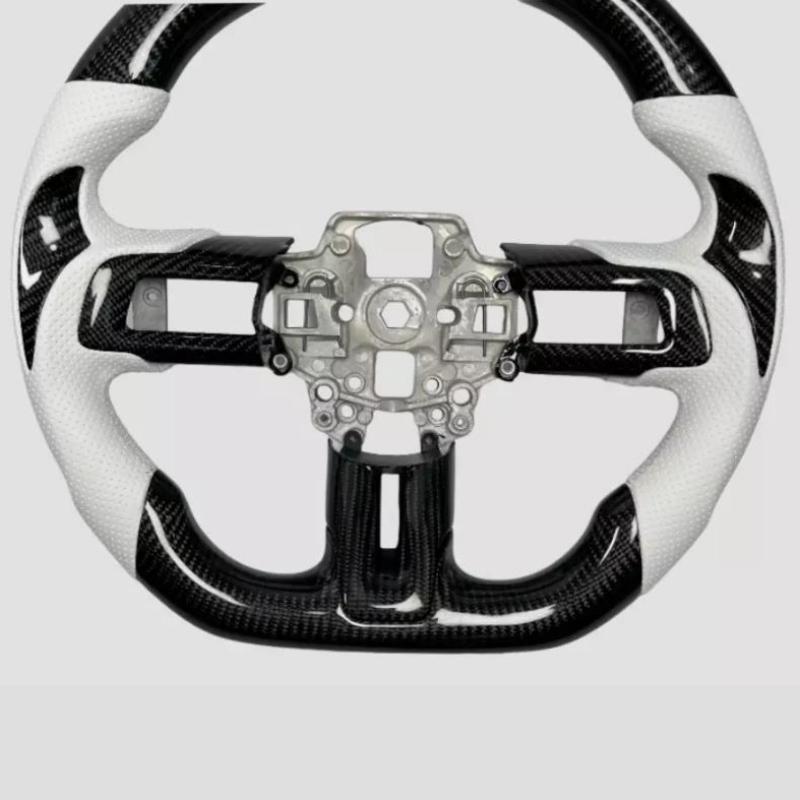 White Perforated Leather Carbon Fiber Steering Wheel for Ford Mustang GT 15-23